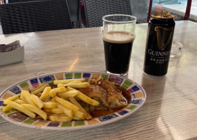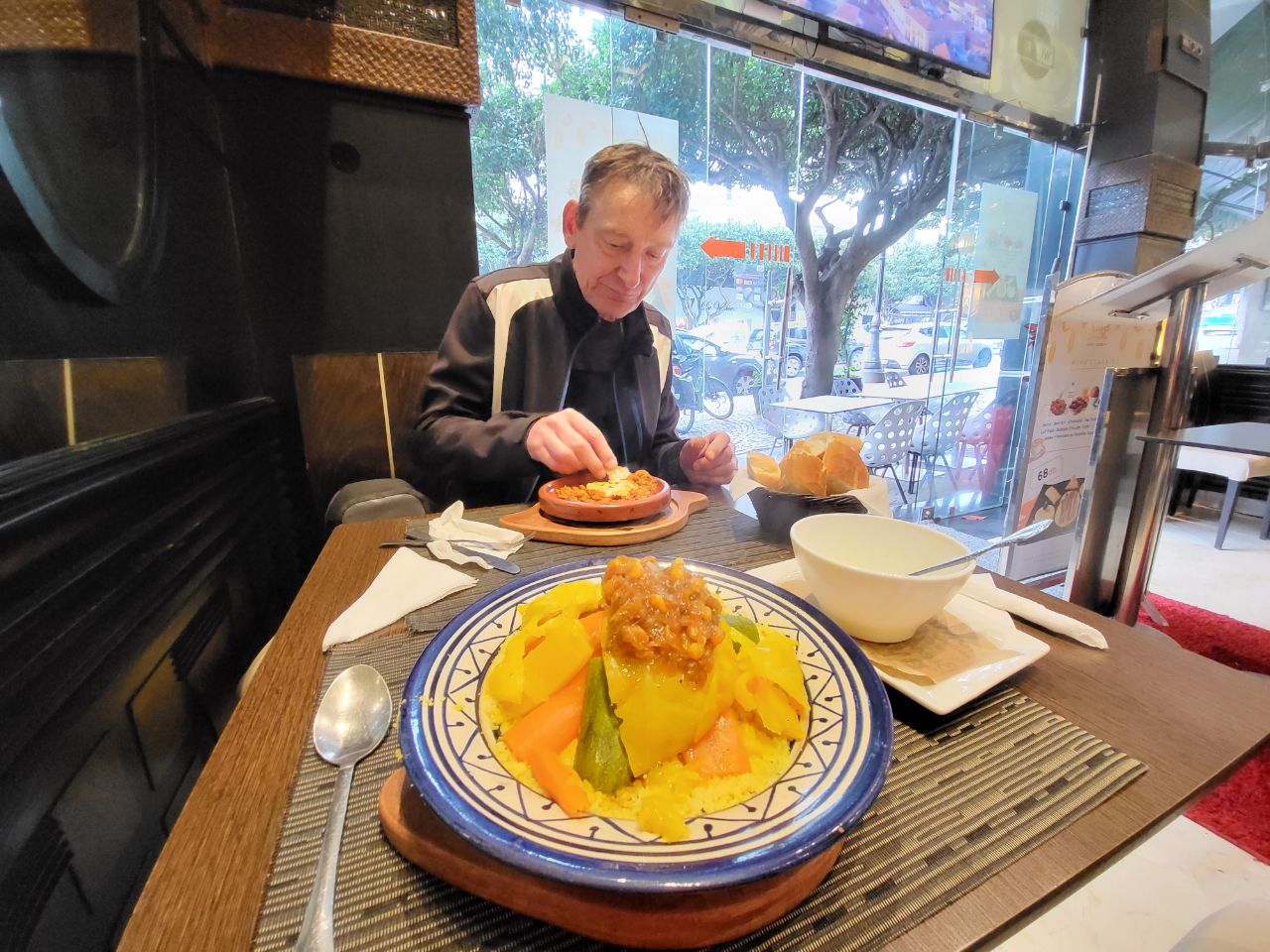 Zowel in Spanje als in Marokko vonden we het eten erg eenzijdig. Elk restaurant hanteert ongeveer dezelfde kaart. En als vlees/vis weigeraar had ik heel erg weinig keus, al was dat in Marokko wel beter dan in Spanje. In Spanje wordt nagenoeg géén groente geserveerd. In onze vorige Spanje edities konden we vaak nog gegrilde groente krijgen, maar zelfs dat was er nu nergens. We moesten het met vrij fantasieloze salades doen. En dat terwijl er zoveel verschillende groentes geteeld worden en het ook allemaal gewoon in de winkels ligt. Dit is wel het grote manco als je van de restaurants afhankelijk bent, het is heel lastig om gezond te eten. Wel is het eten goedkoop en het staat lekker snel op tafel.