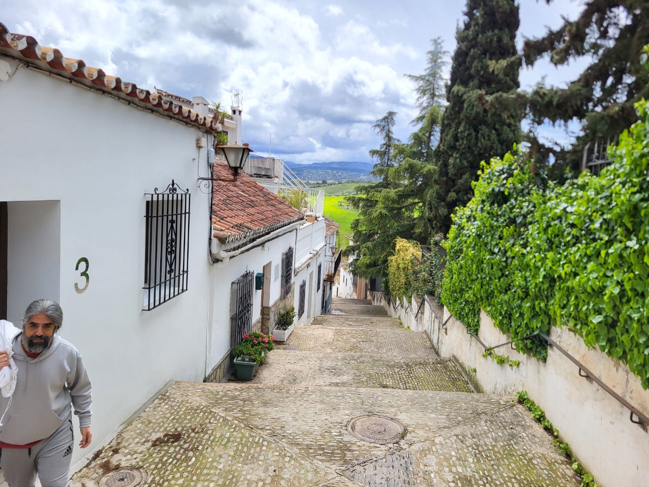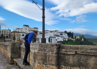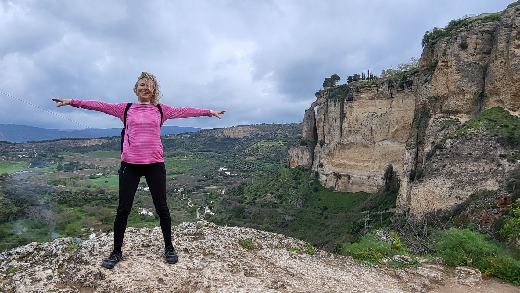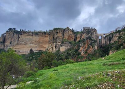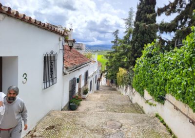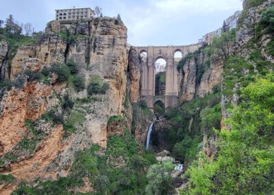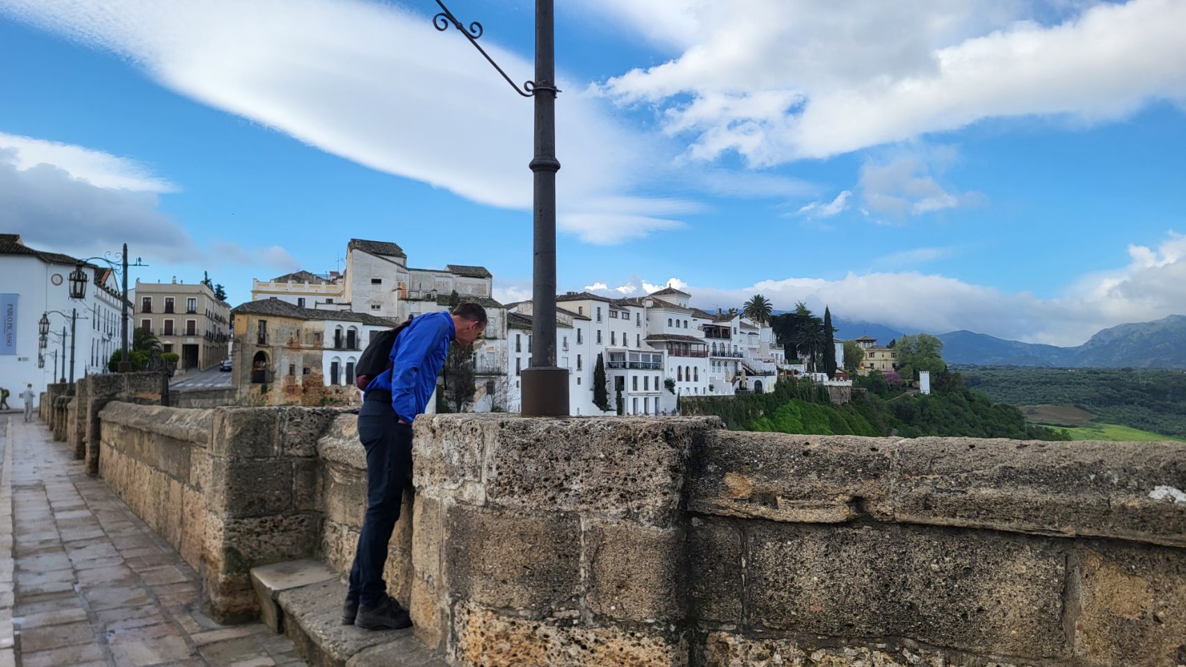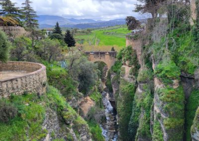 We staan lekker vroeg op en gaan aan de wandel. Eerst over de Puento Nuevo, de nieuwe 98 meter hoge brug over de diepe kloof Tajo de Ronda die dwars door de stad loopt. Daarna naar beneden over trappen en een smal stenig pad. Het weer is lekker totdat het helaas al snel begint te miezeren. Maar we lopen ons rondje van zo’n 10 km toch maar uit.