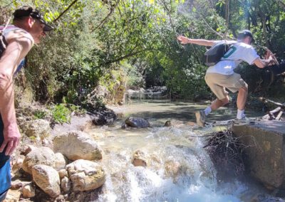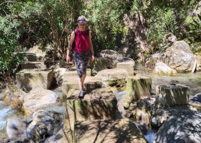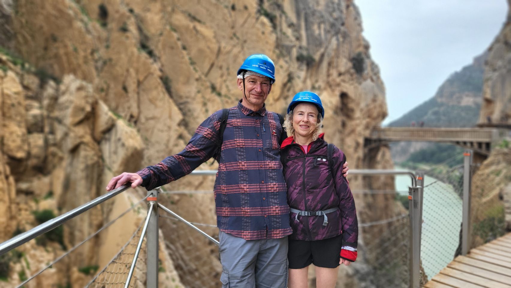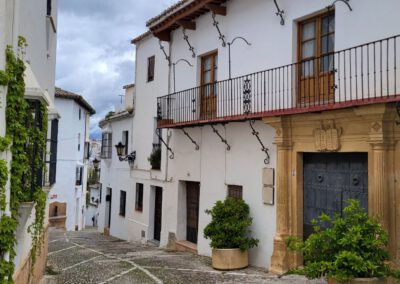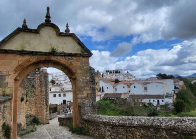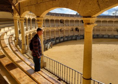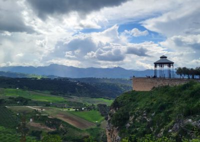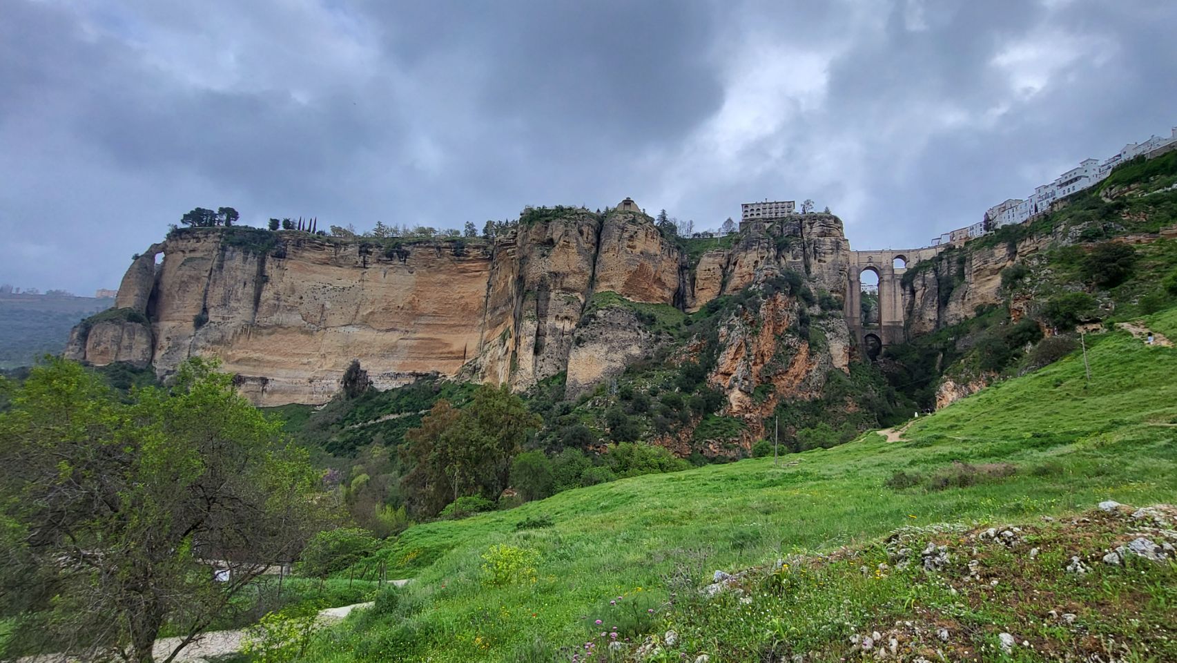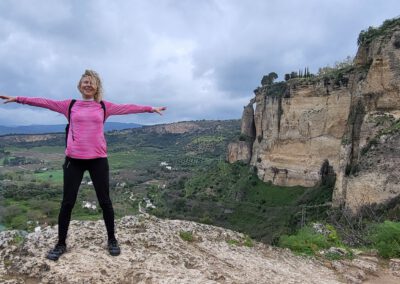 We staan lekker vroeg op en gaan aan de wandel. Eerst over de Puento Nuevo, de nieuwe 98 meter hoge brug over de diepe kloof Tajo de Ronda die dwars door de stad loopt. Daarna naar beneden over trappen en een smal stenig pad. Het weer is lekker totdat het helaas al snel begint te miezeren. Maar we lopen ons rondje van zo’n 10 km toch maar uit.