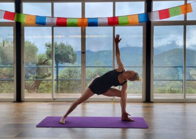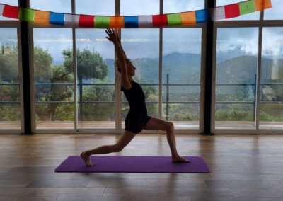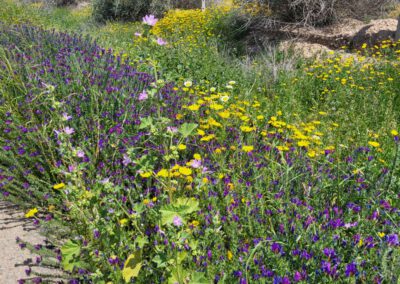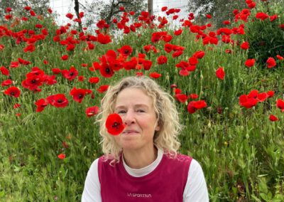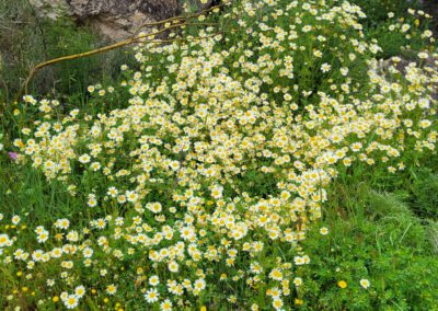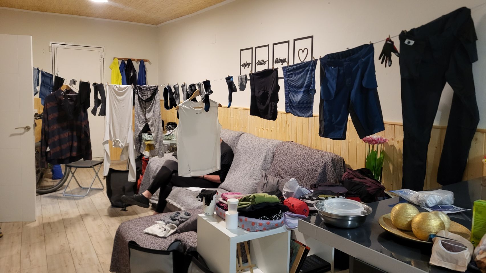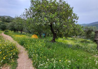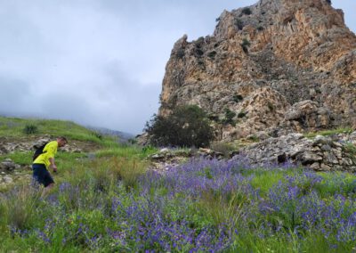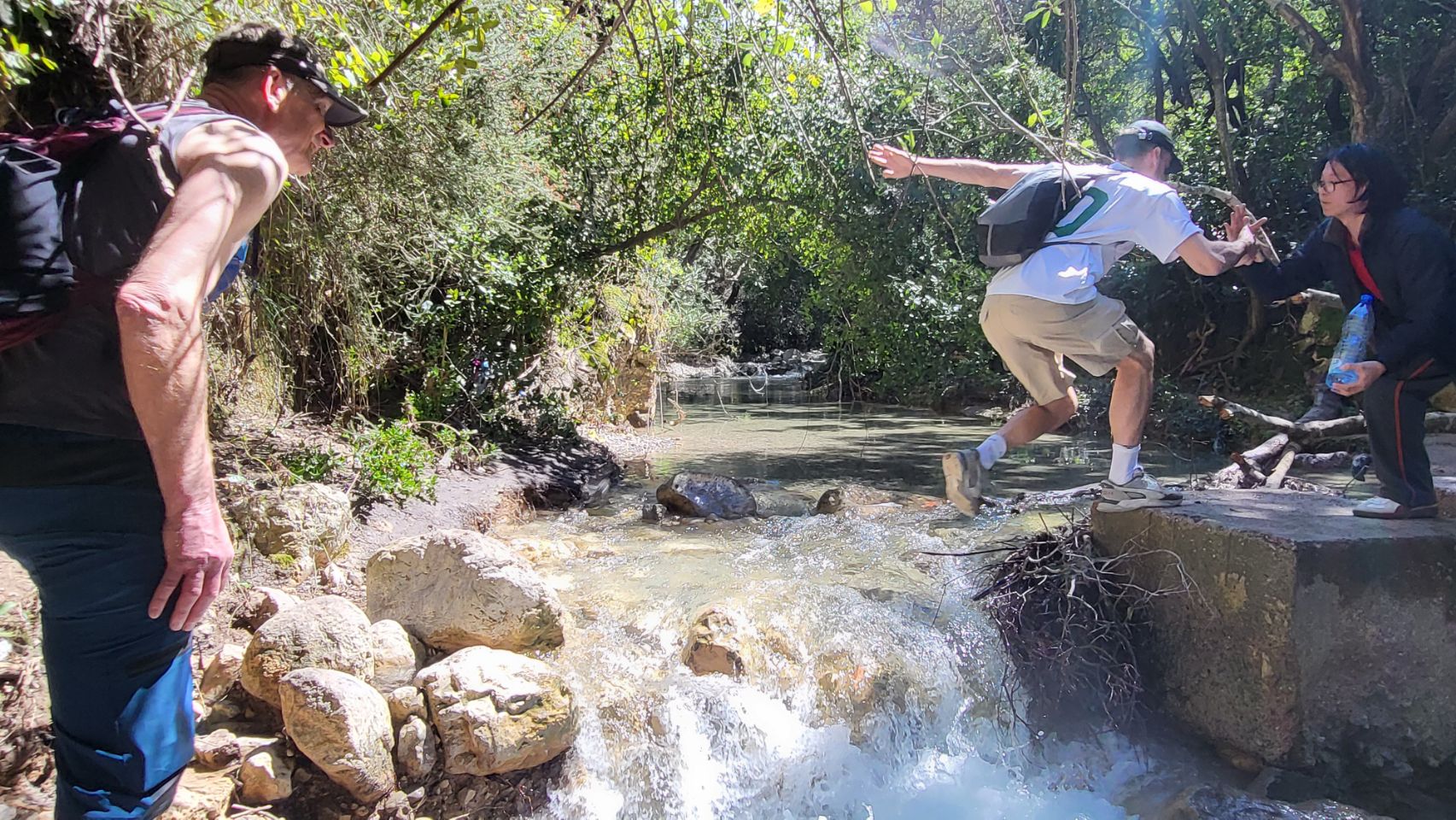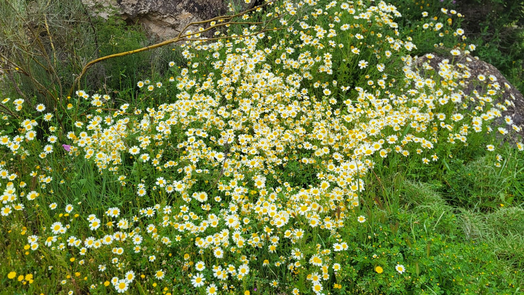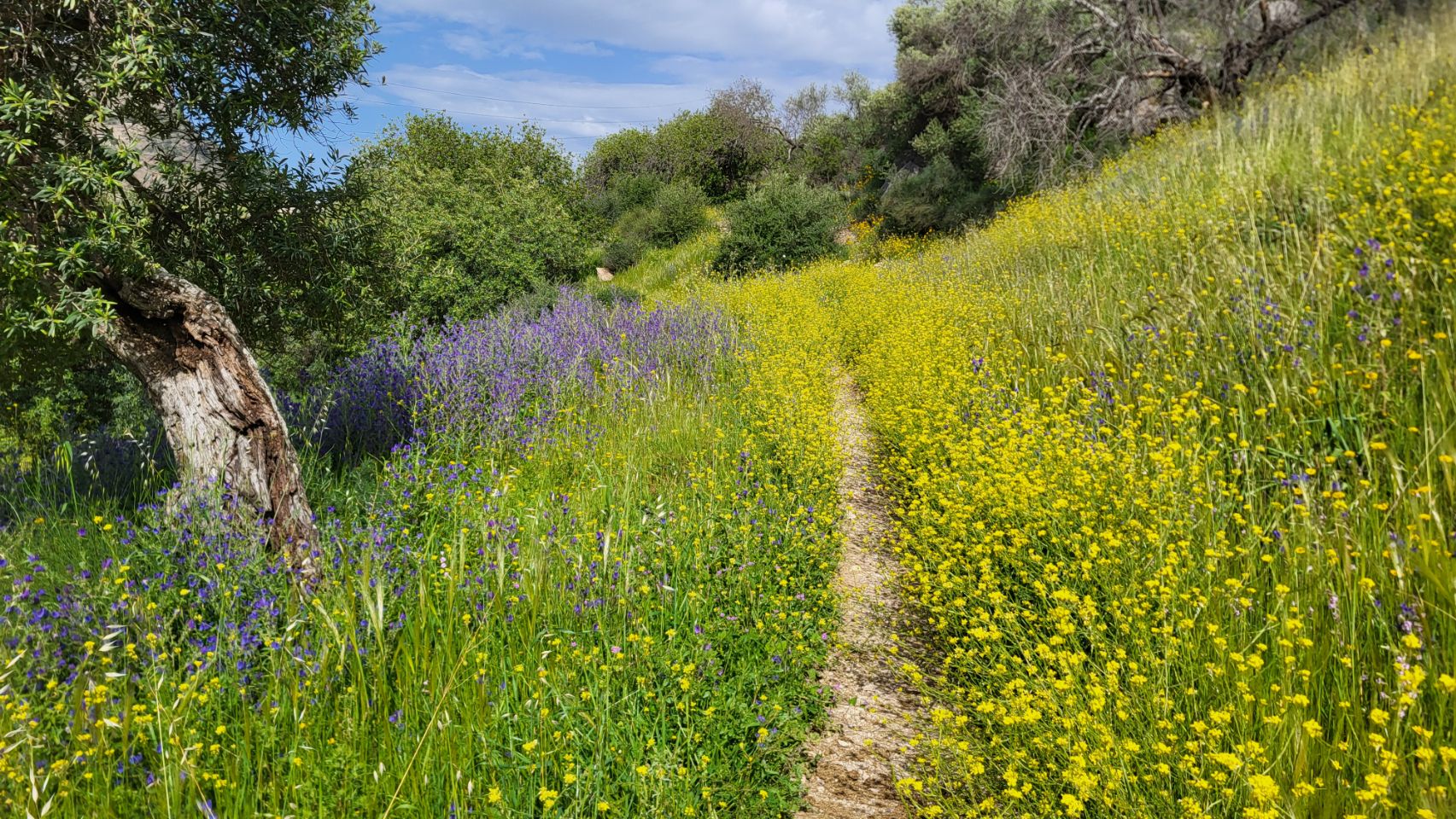 De uitzichten zijn prachtig. We zien bergen, windmolenparken, zonneparken, waarvan een van 7 vierkante kilometer, amandelbomen en veel bloemen. Als we door een bergdorpje komen dan moeten we door héél steile steegjes. Helaas krijgen we in de middag tegenwind en zijn de laatste kilometers zwaar. We komen pas 18:30 uur aan in het parterrehuisje dat we vannacht hebben. Er is een keuken waar we pasta met broccoli koken. En er is een wasmachine, dus een uur later hangt heel de woonkamer vol drogende was aan een lange lijn.