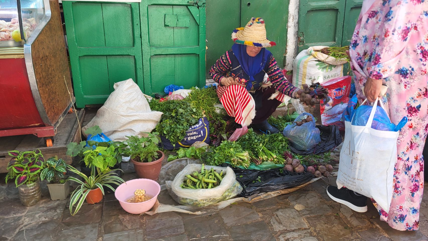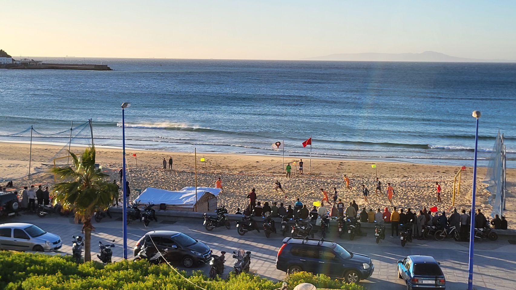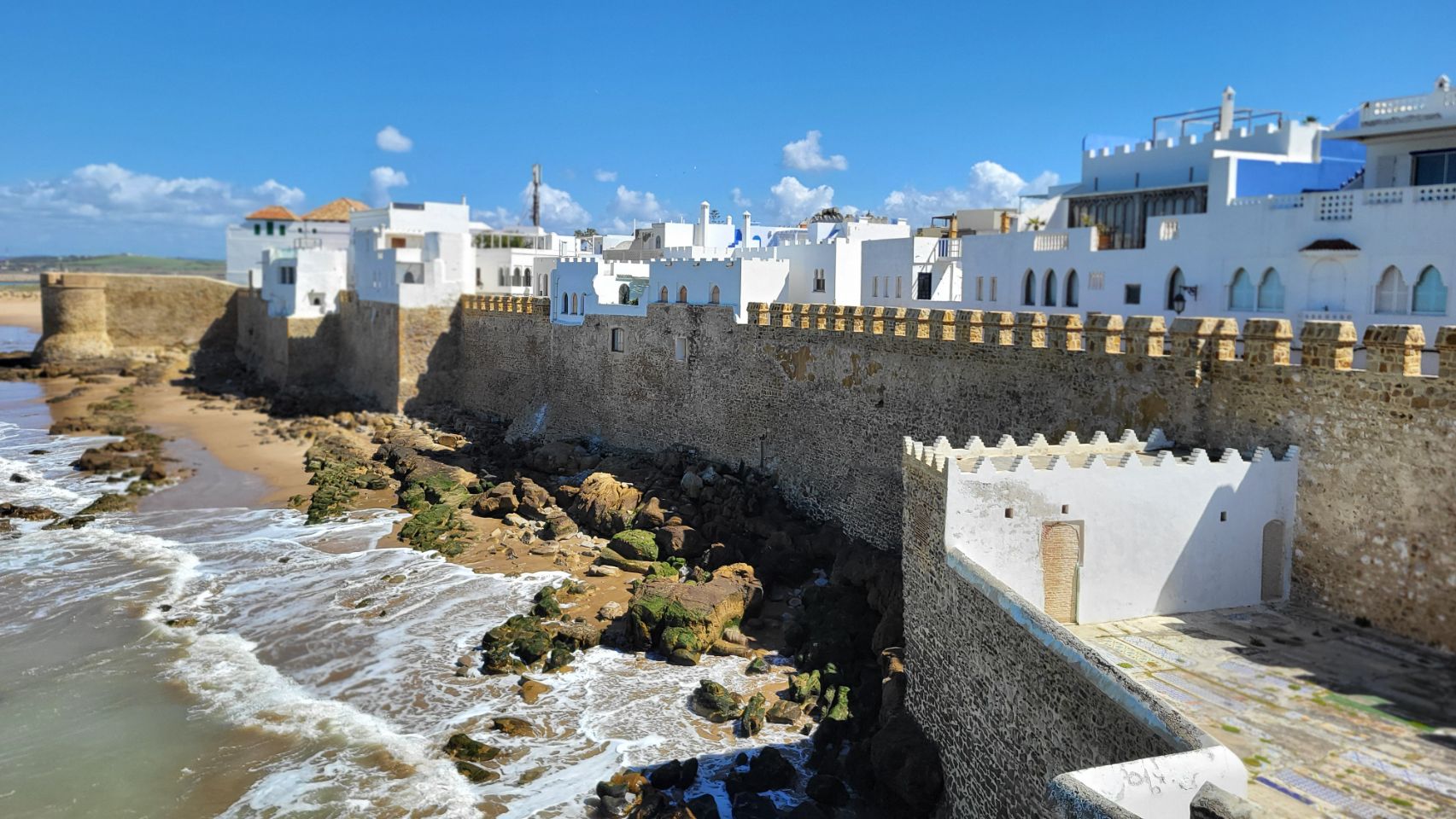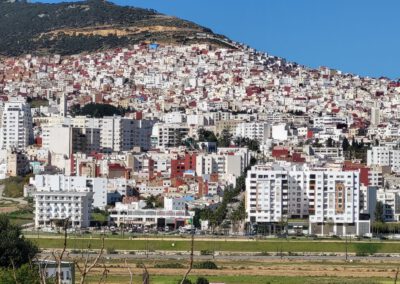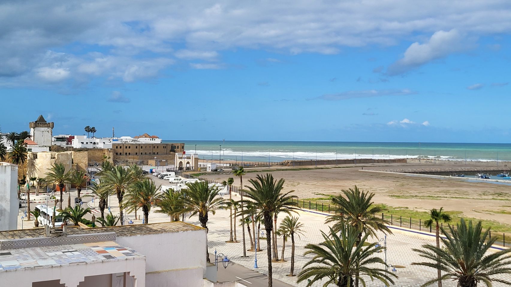 Eenmaal van de boot na de laatste paspoortcontrole moeten we nog door een haag van douaniers. Ze bonken een beetje op onze tassen en vragen of we een drone bij ons hebben. Nee, deze keer niet. En dan fietsen we Marokko in onder een grijze druilerige lucht. Onderweg naar ons hotel stoppen we om wat te eten. Onze eerste tajine en koeskoes smaken heerlijk. Als Willem een vino tinto bestelt wordt hij meewarig aangekeken door de ober. Thee dan misschien…? Na het inchecken gaan we de stad verkennen. Er heerst een gezellige chaos en er wordt allerlei lekkers ingekocht voor straks, als het vasten wordt verbroken na zonsondergang.