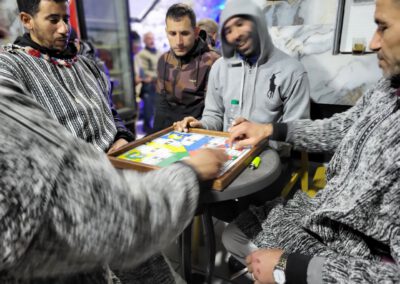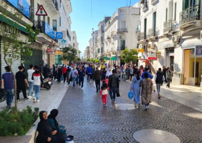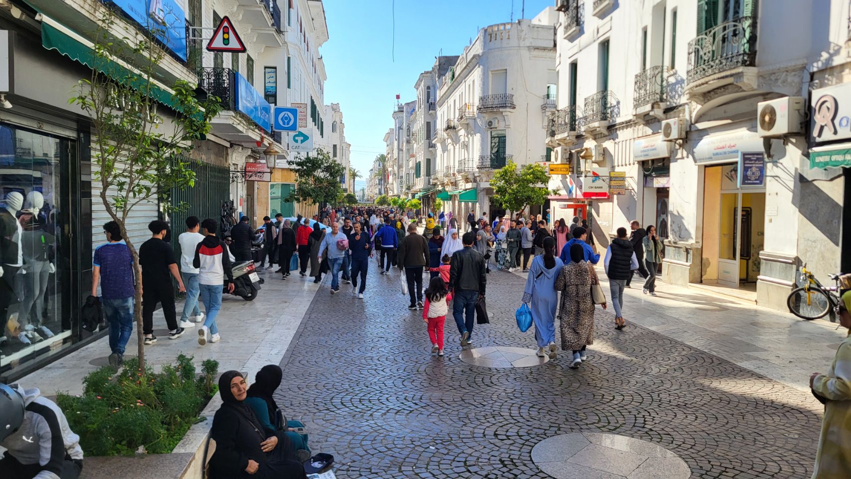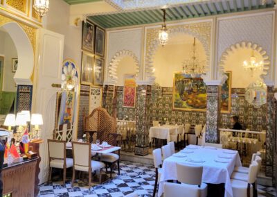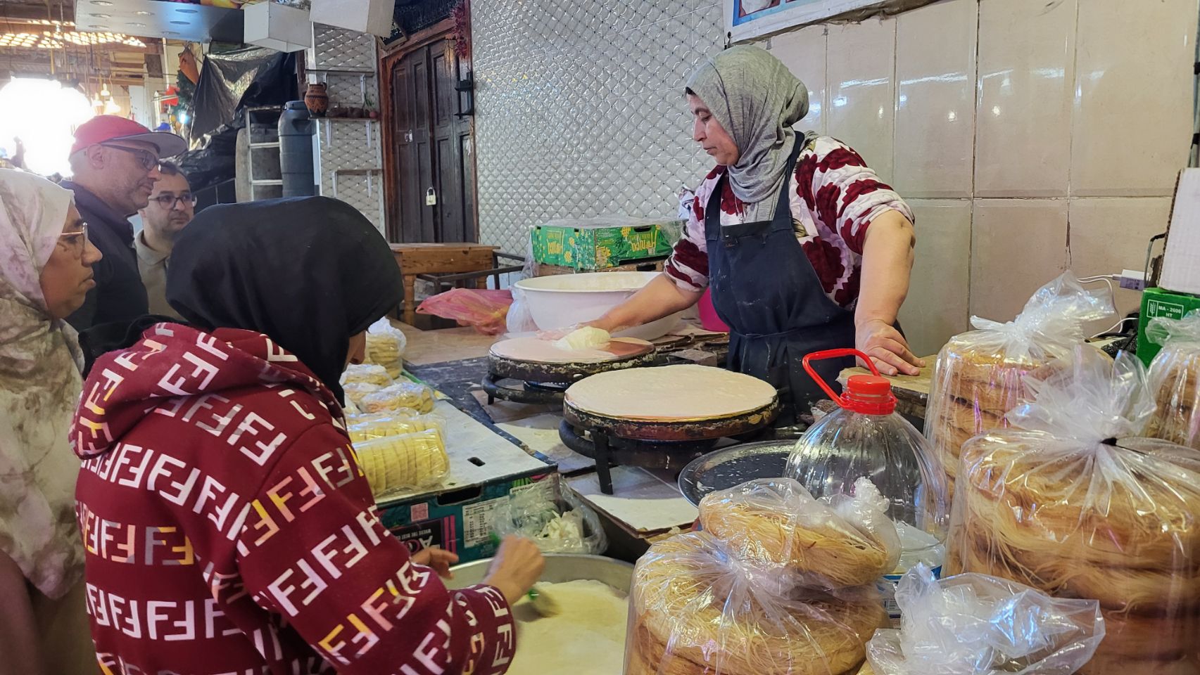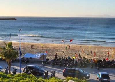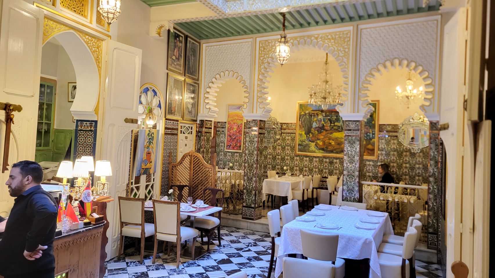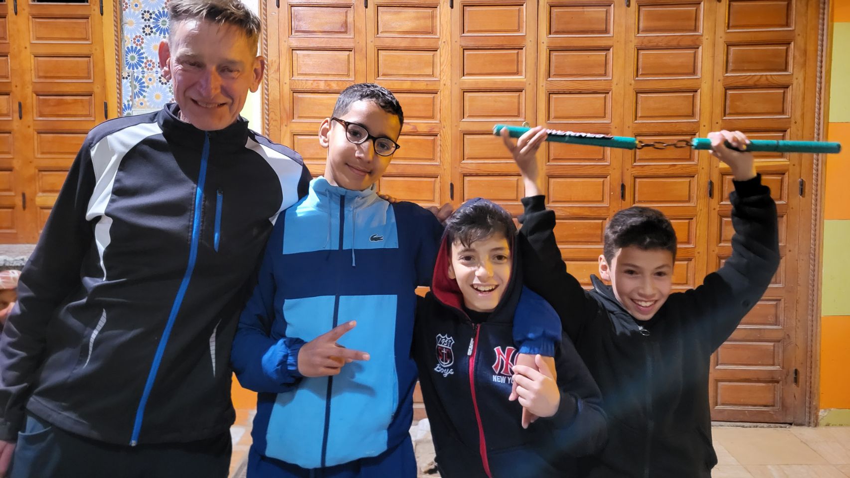 Eenmaal van de boot na de laatste paspoortcontrole moeten we nog door een haag van douaniers. Ze bonken een beetje op onze tassen en vragen of we een drone bij ons hebben. Nee, deze keer niet. En dan fietsen we Marokko in onder een grijze druilerige lucht. Onderweg naar ons hotel stoppen we om wat te eten. Onze eerste tajine en koeskoes smaken heerlijk. Als Willem een vino tinto bestelt wordt hij meewarig aangekeken door de ober. Thee dan misschien…? Na het inchecken gaan we de stad verkennen. Er heerst een gezellige chaos en er wordt allerlei lekkers ingekocht voor straks, als het vasten wordt verbroken na zonsondergang.