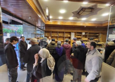 Het is een koude ochtend en warm gekleed gaan we naar de pastelleria om te ontbijten. Er zitten groepjes studenten die het blijkbaar lukt om eerder uit bed te komen voor een sapje en hapje op het terras voordat ze naar school gaan. Wij gaan lekker warm binnen zitten.