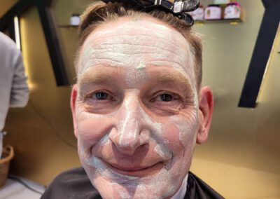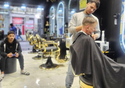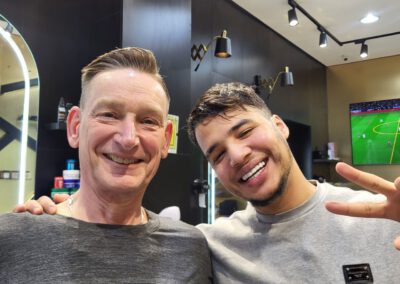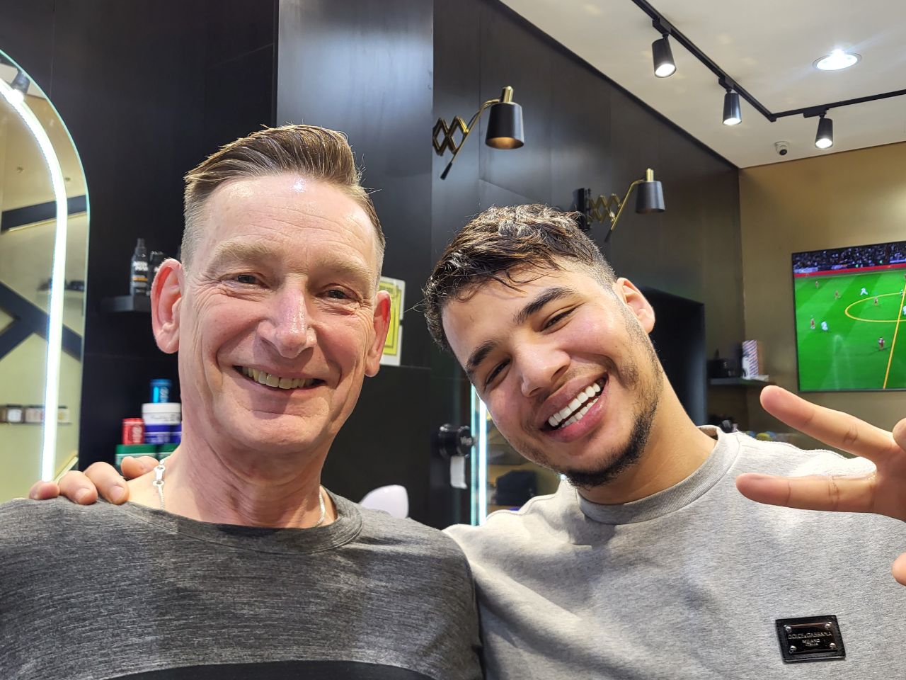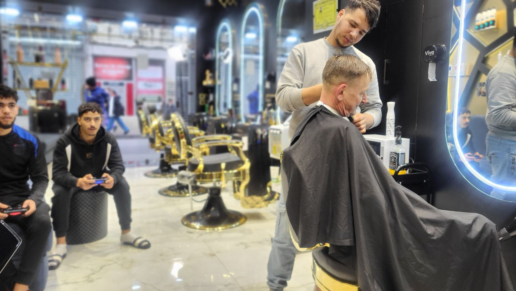 Willem gaat naar de barbier. Binnen zitten drie jonge gasten te gamen. Een van de drie knipt en scheert Willem tussen het spelen door en smeert een maskertje op zijn gezicht. Hij ziet er na deze behandeling net zo strak uit als de mooie en goed verzorgde Marokkaanse mannen. Willem krijgt de mannengroet van de kapper, links en rechts de wangen tegen elkaar met een luchtzoen. Om half 7 is de zon onder en opeens zijn de straten vrij van verkeer en begint de imam vanuit de moskee via de versterker gebeden te zingen. De mannen eten gezamenlijk in de restaurantjes, allereerst dadels en daarna Harirasoep en brood. De vrouwen zijn uit het straatbeeld verdwenen, behalve een enkele niet-moslima. Wij eten eenzelfde speciaal ramadan menuutje in een restaurantje in onze straat. Het eten is goed hier, met veel zoetigheid erbij.