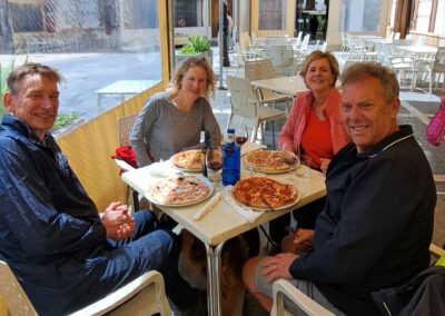 ’s Middags gaan we met Aad en Margreth gezellig lunchen vlakbij ons hotel. Daarna lopen we samen de winkelstraatjes nog even in waar Willem en Margreth een souvenier kopen. De zon schijnt nu maar er waait wel een koude wind. We nemen afscheid en zien elkaar morgen nog even voordat zij weer richting Nederland gaan.