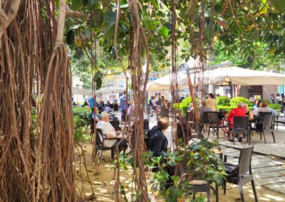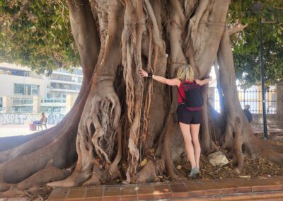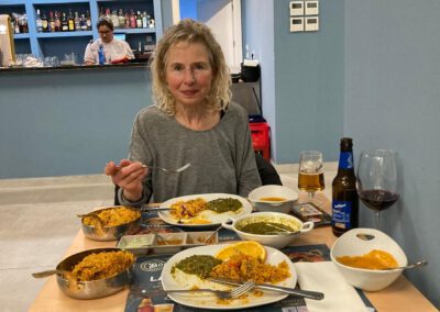 Nog een leuk weetje uit deze regio. Er groeien hier veel Johannesbroodbomen. De zaden uit de peulen worden gebruikt om Johannesbroodpitmeel van te maken dat in veel levensmiddelen toegepast wordt als bindmiddel. De zaden wegen elk exact 0,2 gram waardoor ze vroeger werden gebruikt bij het bepalen van het gewicht van edelstenen. Het woord karaat, de gewichtseenheid die voor diamanten gebruikt wordt, is afgeleid van het Oudgriekse woord keration voor de vrucht van de Johannesbroodboom en is gelijk aan een vijfde gram. ‘S avonds eten we Indias. een heerlijke afwisseling op de Spaanse happen.