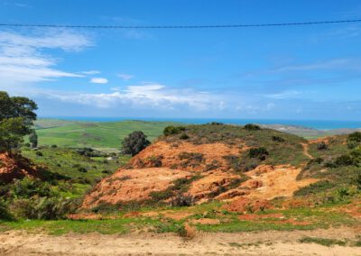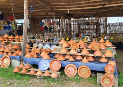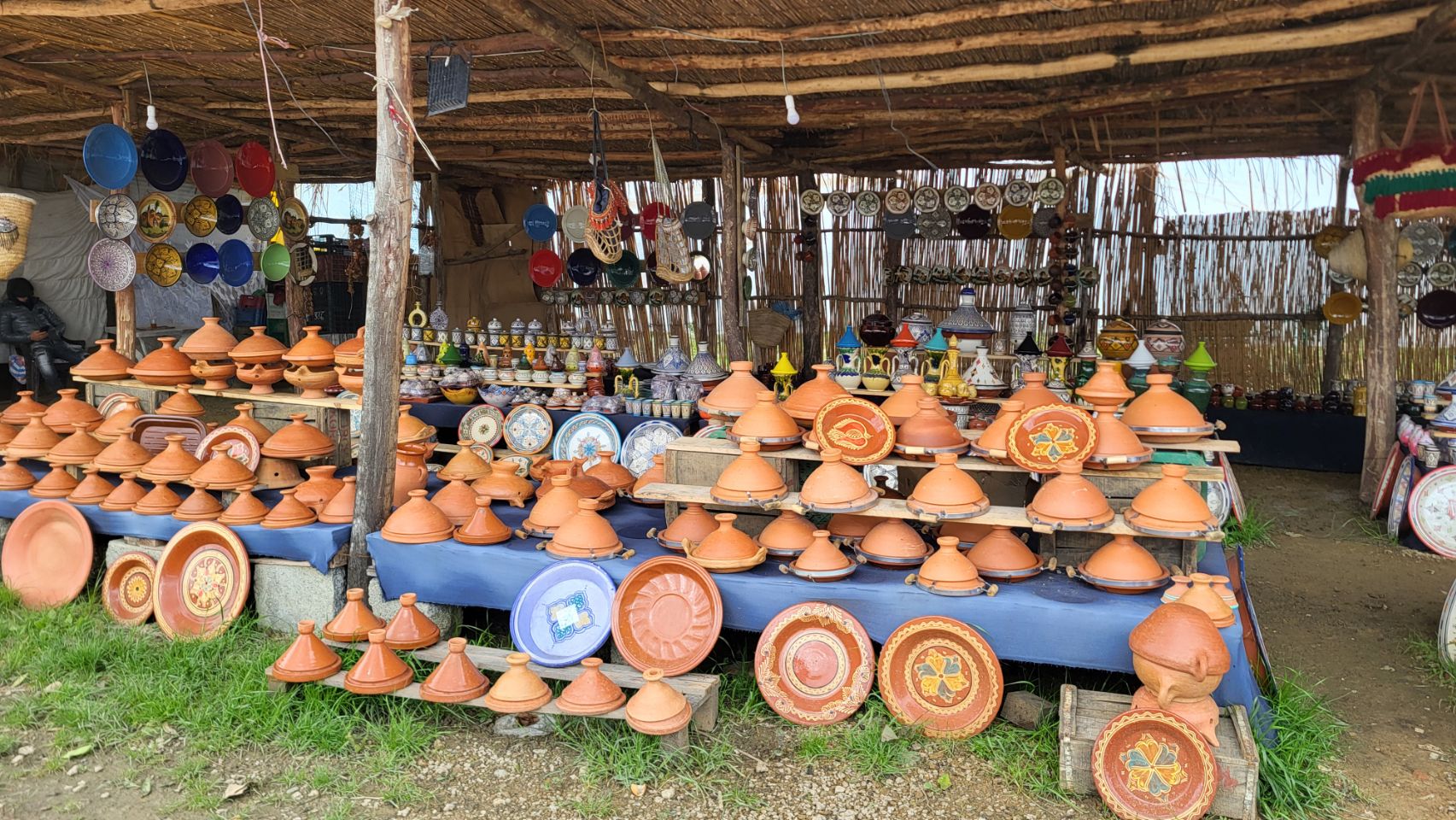 Slechts 42 km te gaan vandaag naar Larache, dat ook aan de westkust ligt. Maar tegen de wind in en heuvel op heuvel af, is het meer dan genoeg. De route gaat weer door vrij leeg landbouwgebied afgewisseld met wat bos met vooral kurkeiken. We zoeken een plekje waar niet zo veel afval ligt om te picknicken. De dag begon met regen, maar de zon komt steeds vaker achter de wolken vandaan. Langs de weg staan fruitverkopers en er zijn veel stalletjes met keramiek en aardewerk.