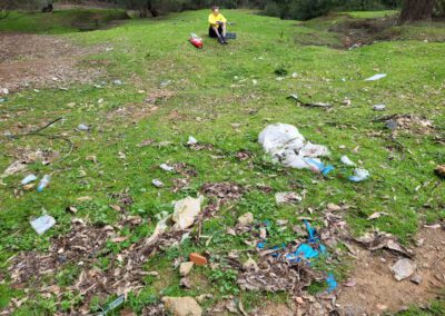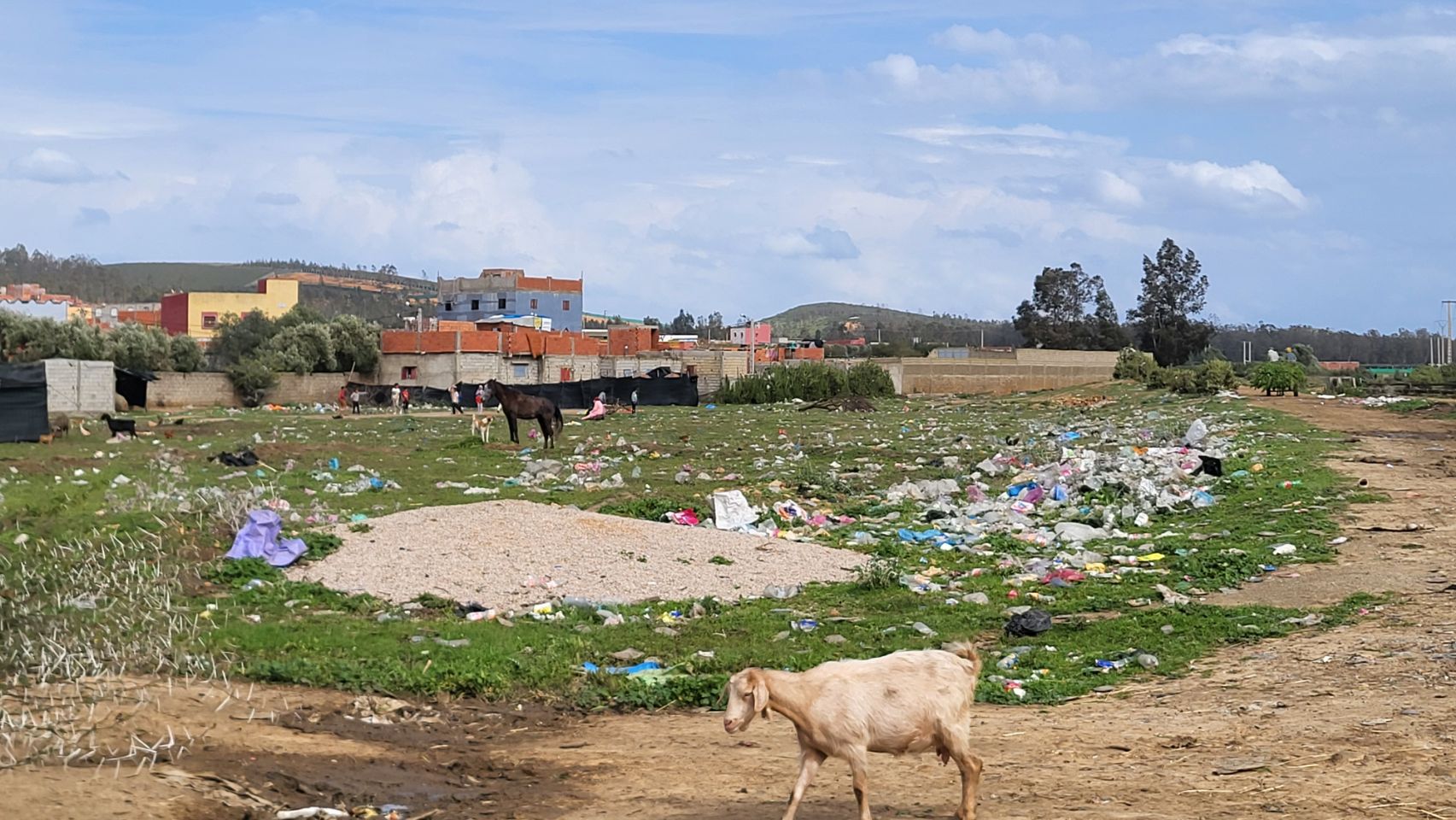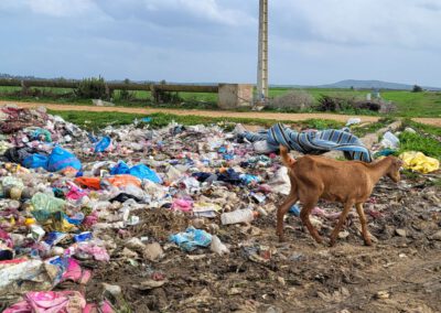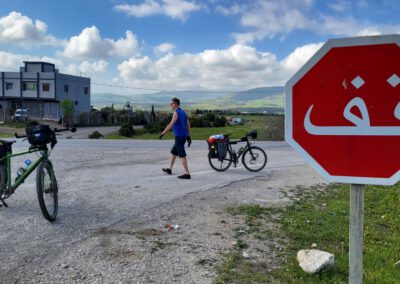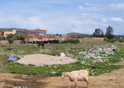 We komen door een verpauperd stadje, maar er zijn wel enkele koffietentjes. Alles blijkt echter gesloten vanwege Ramadan. En dat blijft de rest van de behoorlijk saaie route zo. We komen nog wel door een stukje bos met kurkeiken en eucalyptus bomen. Onze blik wordt echter meer naar al het gedumpte afval getrokken dan naar de begroeiing.