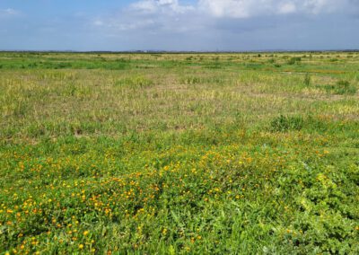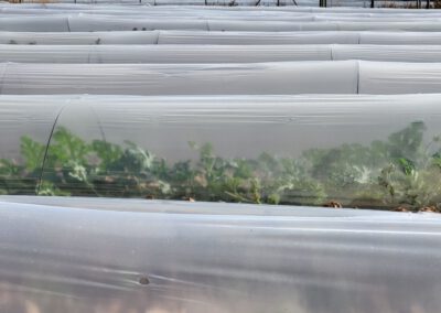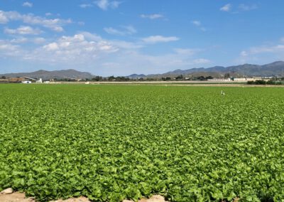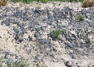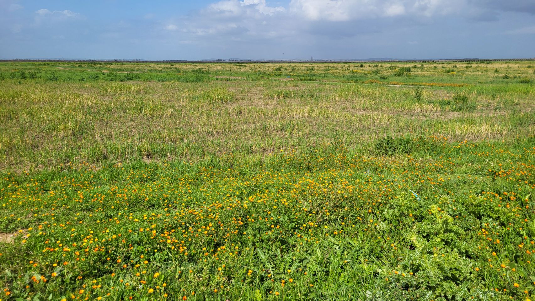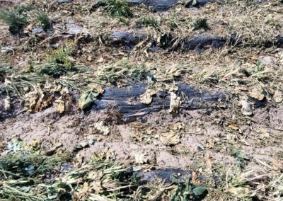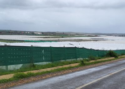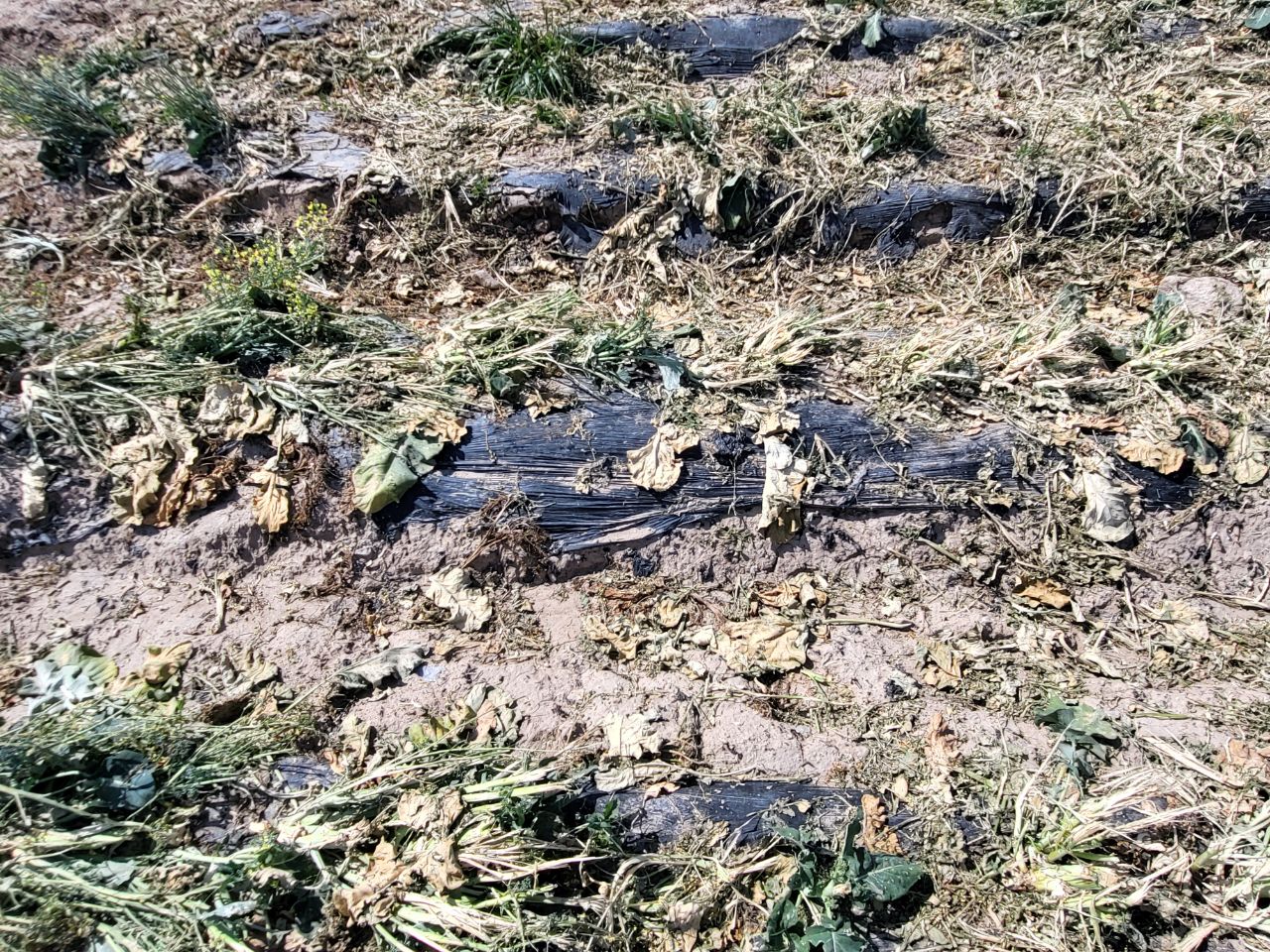 Het wordt 25 graden en we trappen de kilometers lekker weg. We halen wat eten in de supermarkt en lunchen op een bankje in de schaduw. We passeren enorme bloemenvelden, daar kan ik zó van genieten! De wind begint flink aan te wakkeren, maar helaas niet achter ons. We fietsen weer kilometers door tuinbouwgebied met teelten in de volle grond, zo te zien hier veel broccoli. De planten staan in gaten in zwart plastic. De groente is geoogst en de doorgeschoten planten worden nu machinaal bij de grond afgesneden. Er blijven veel plantenresten achter en die liggen over het zwarte plastic dat al helemaal uit elkaar valt en nog nauwelijks te verzamelen is. Aan de omgeploegde velden te zien wordt dit plastic met de plantenresten dan maar meegeploegd de grond in. De aarde is vergeven van het plastic. Ik heb een foto gemaakt waarop dit duidelijk is te zien, en daarvan zien we hectare na hectare kilometer na kilometer. Langs de weg is een opgehoogde berm gemaakt. Ook deze is zwart van het plastic en loopt kilometers door. Er dwarrelt overal plastic rond. Het is gewoon echt horror wat we hier zien! Al dat degenerende plastic, voor altijd blijvend in de grond en de lucht waar het net als saharazand over de halve wereld kan verwaaien…waar is hier de ketenverantwoordelijkheid? Van de tegenwind werd ik al moe en chagrijnig, maar hiervan raak ik echt gedeprimeerd.