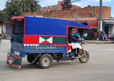Het eerste deel van de weg waarop we rijden wordt verbreed en opnieuw geasfalteerd. Heel de verdere route is de weg prima en breed genoeg om veilig te fietsen. De auto’s houden zich aardig aan de maximale snelheid, op een enkele testosteronchaufeur na. In de stadjes zie je vanaf de asfaltweg onverharde zijstraatjes. Langs de hoofdweg staan redelijke gebouwen, maar in de zijstraatjes zijn het vaak krottige huisjes. Maar vandaag zien we minder armoede en ook minder afval langs de weg.