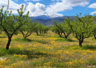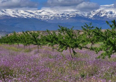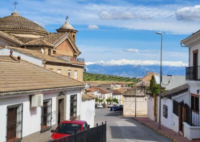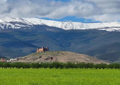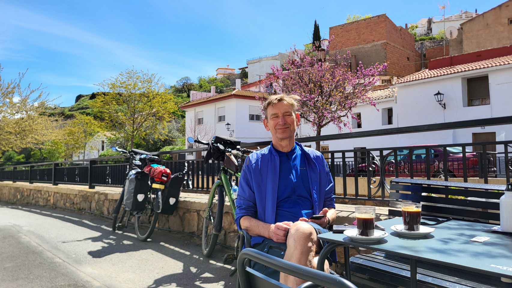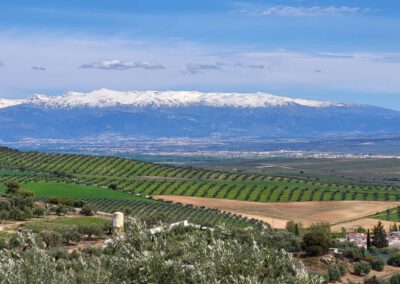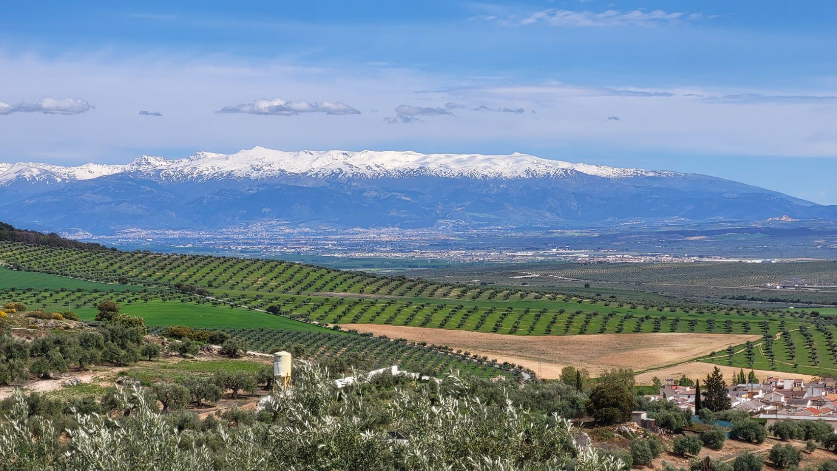 Rustdag vandaag. Ook al hebben we na een week pas net weer twee dagen gefietst, ze waren flink pittig dus de oudjes moeten weer even bijkomen. We zitten in een dorp van niets en dat is dus perfect om niets te doen. Wel maken we een planning voor de komende dagen. Toch maken we ’s middags nog even een wandelrondje van een uurtje. Tot onze verrassing krijgen we een prachtig zicht op de besneeuwde toppen van de Sierra Nevada. Ook zien we Granada liggen aan de voet van het berggebied.