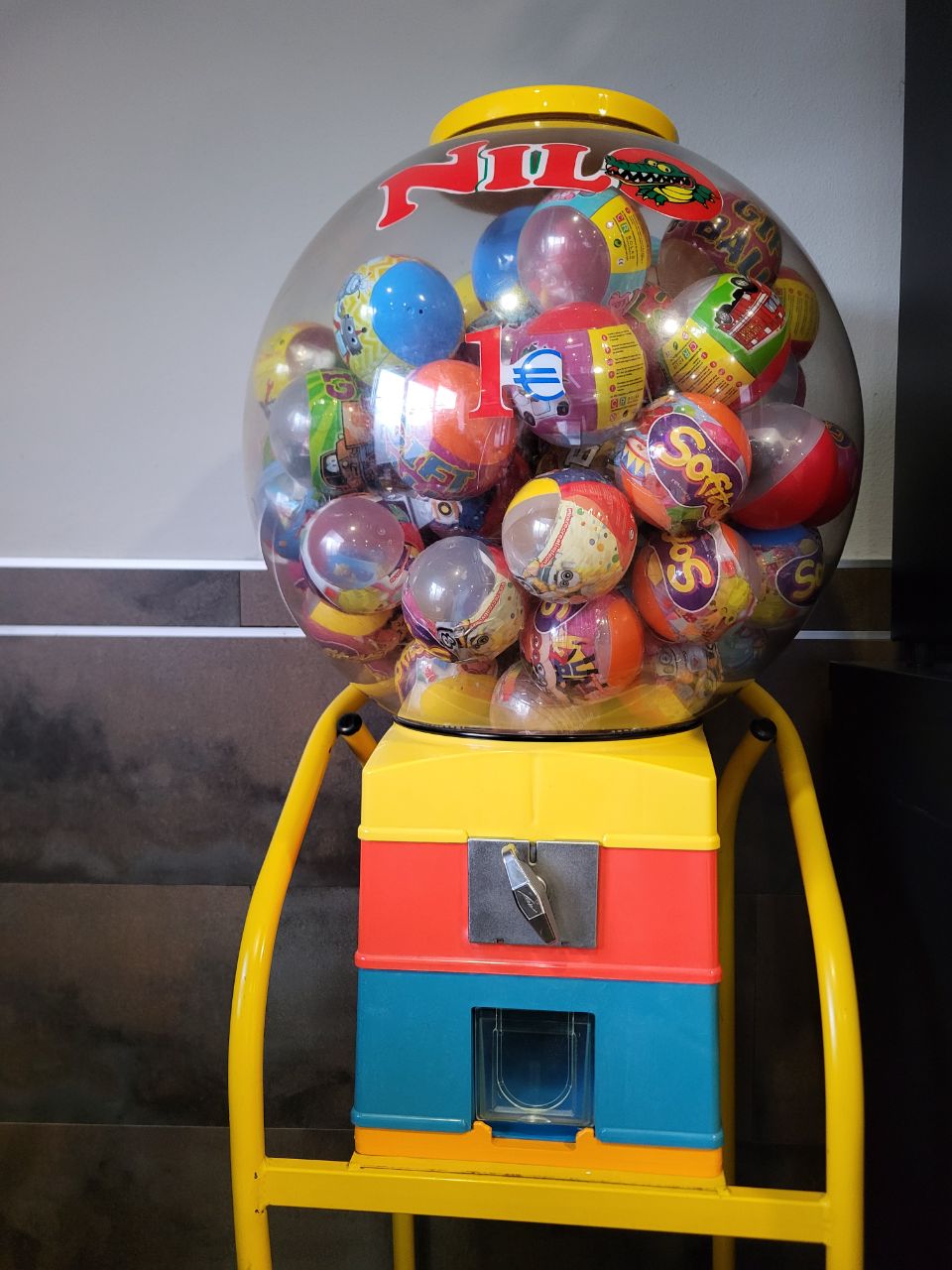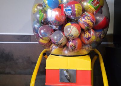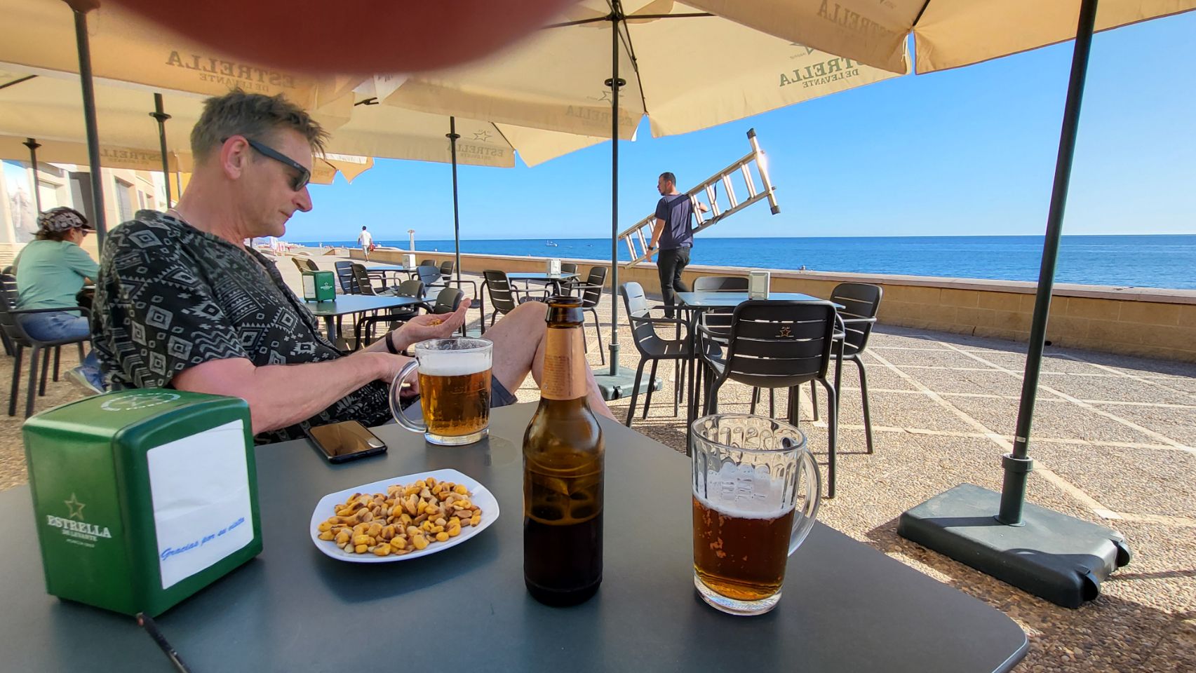 We aten ’s middags een salade die lekker zou zijn als ze hem niet verzopen hadden in een dressingsaus. ’s Avonds eten we patatas bravas, ook weer bedolven onder een dikke laag (overigens lekkere) mayosaus. Hoezo gezond mediteraan dieet?? In het restaurant staat een ouderwetse ballenautomaat. In Nederland waren dat vroeger die rode apparaten met kleine plastic ballen met een speeltje er in. Hier waren ze een stuk groter, ruim 10 cm doorsnee. Willem kijkt er vol nostalgie naar omdat onze kinderen die kregen als ze bij oma in Spanje waren en hij moet zich bedwingen om er geen bal uit te trekken.