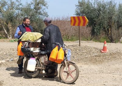 Zo’n foliekas is een enorme bron van microplastic. Het plastic degenereert door de weersinvloeden en langzaam vallen de gaten in de folie. We zien het afbraakproces doordat er kassen van allerlei leeftijd door elkaar staan. Uitgefaseerde kassen worden ontmanteld maar hele stukken plastic blijven achter en wapperen in de wind die steeds deeltjes mee neemt. De satelieten laten het enorme kassengebied goed zien. Vanuit hier worden de producten naar veel landen in Europa geexporteerd. We komen een chauffeur tegen die vertelt dat hij van hier op Nederland rijdt. Er werken veel arbeidsmigranten, zoals uit Marokko.