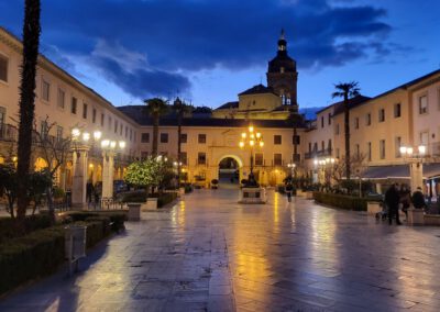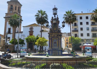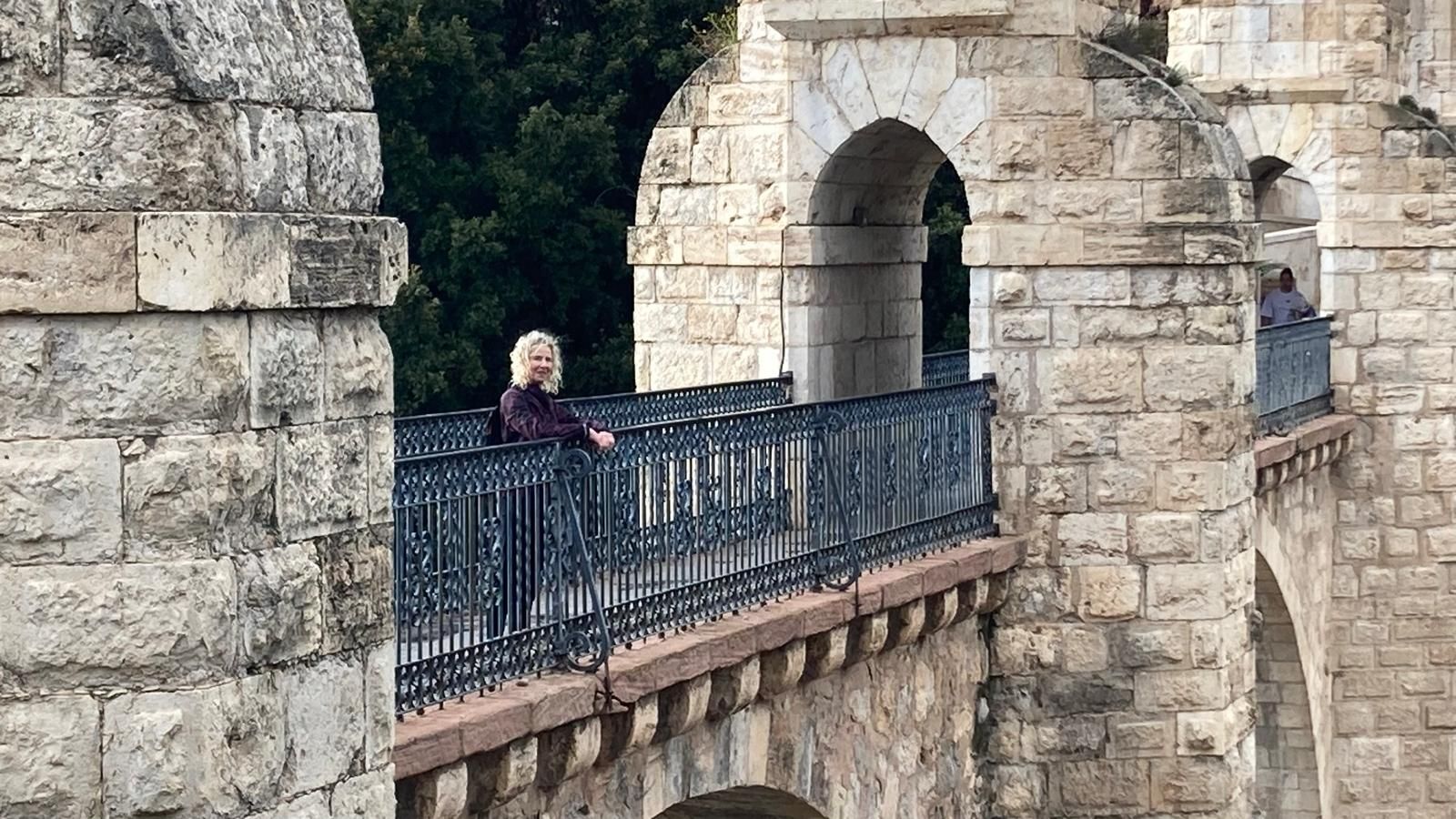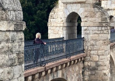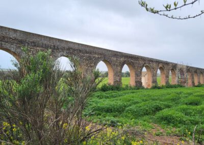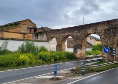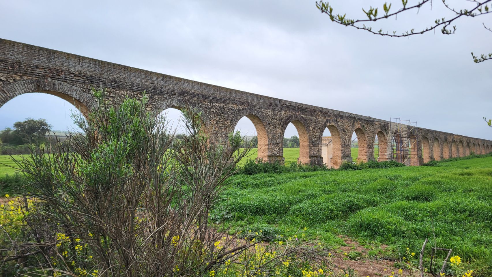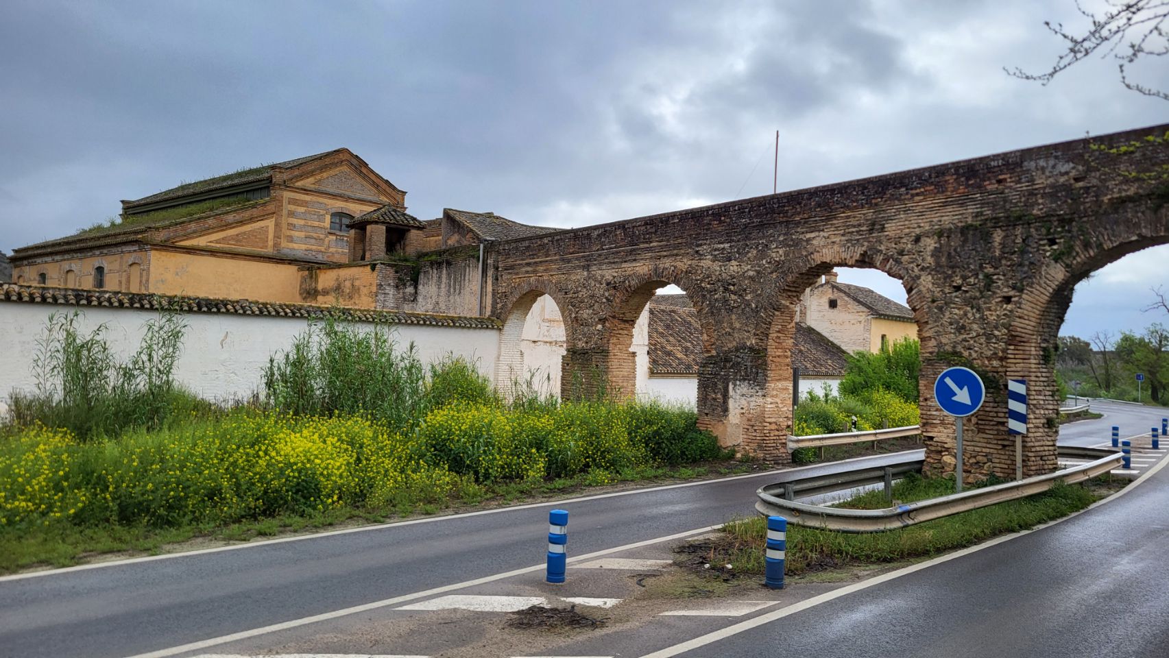 Gisteren tikte de temperatuur eindelijk de 20 graden aan, maar vandaag keldert deze weer naar 12 graden. Ook de regenjas moet aan tegen de miezer. Gelukkig komt de zon af en toe door en dan voelt het meteen een stuk aangenamer. Maar in heel Spanje is het weer van slag. Kou, veel regen en vandaag storm in het noorden. Alleen aan de zuid-oost costa’s is het beter. Het is rustig op de wegen naar de stad. We passeren nog een mooi aquaduct, gebouwd in de 18e eeuw.