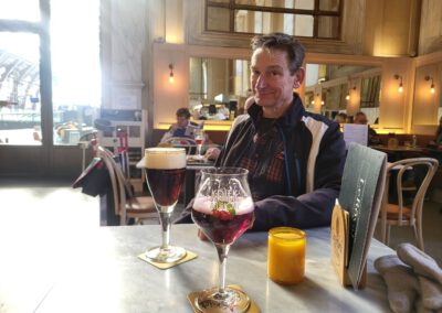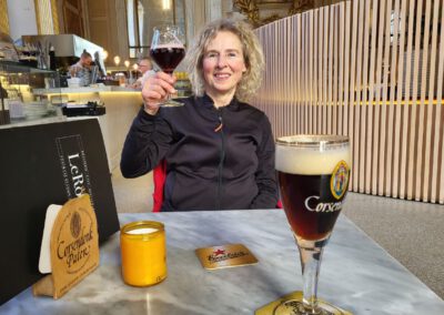 Uiteindelijk moeten wij toch dezelfde trein weer in en rijdt deze via een andere route alsnog naar Antwerpen. Onze verbinding hebben we allang gemist en in Antwerpen zitten we weer een paar uur vast wegens treinstakingen. We proosten er maar op met een Belgisch biertje in de prachtige restauratie van een van de mooiste stations van de wereld. We zullen vandaag vast nog wel een keer in Lille aankomen voor onze eerste overnachting.