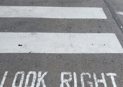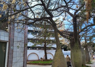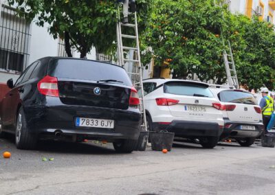 Fietspaden zijn er wel, alleen nog geen fietsers. In een straat met bomen vol dikke rijpe sinaasappels staan gemeentewerkers op ladders om deze uit de bomen te rauzen. Met doffe ploffen vallen ze op auto’s en op straat. Omdat er exemplaren kapot vallen, hangt er een heerlijke sinaasappelgeur. Zouden deze citrusvruchten nog enig nut dienen? Navraag leert dat ze goed zijn voor de mermelade.