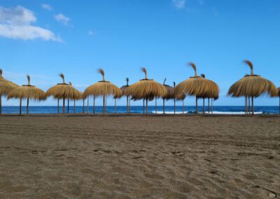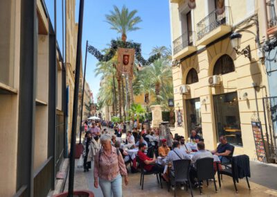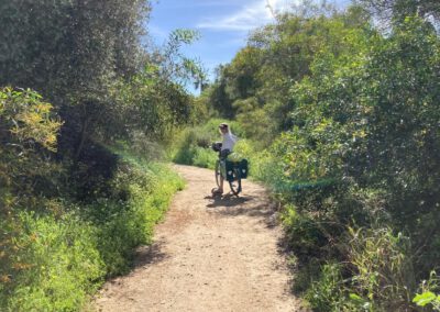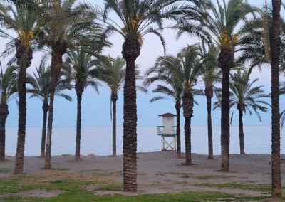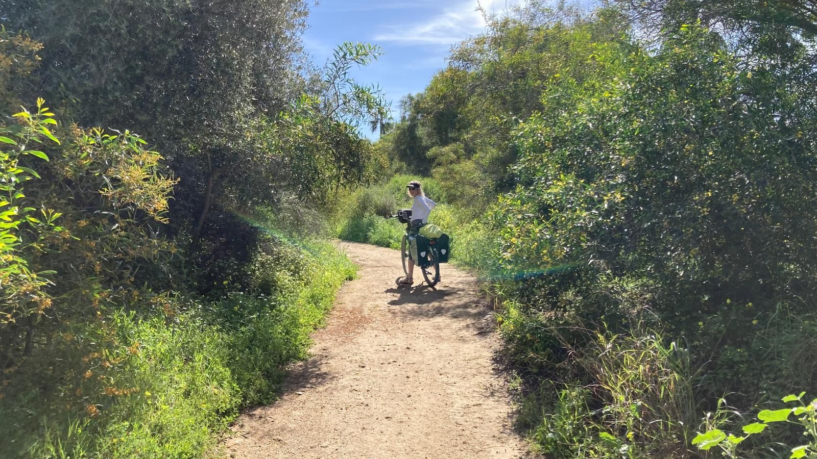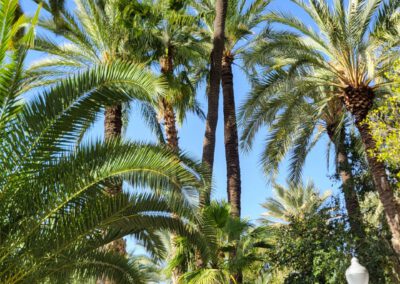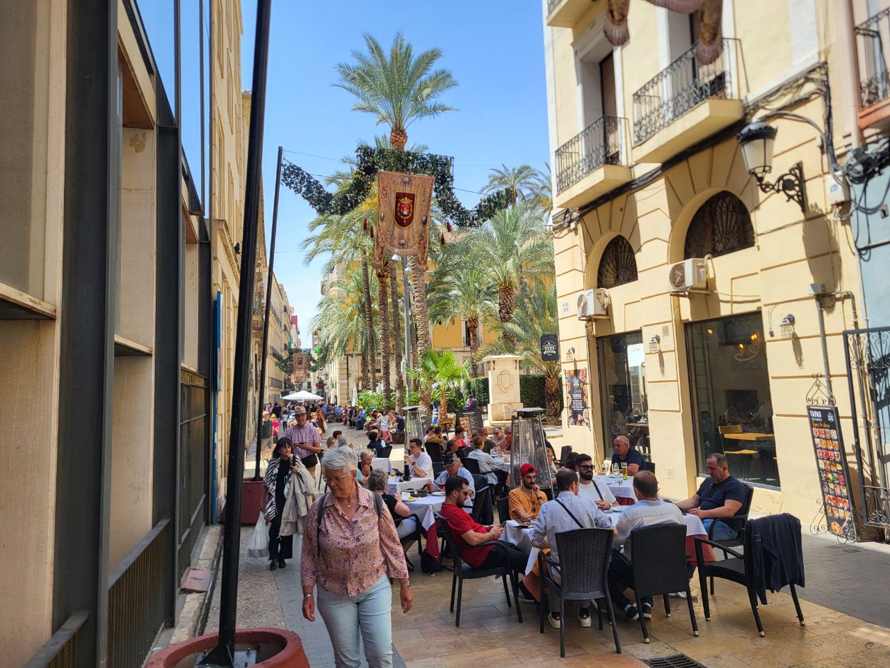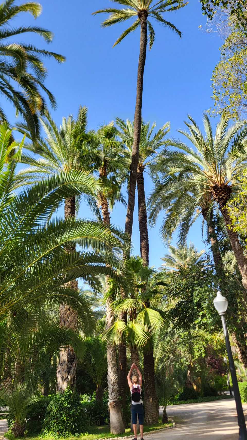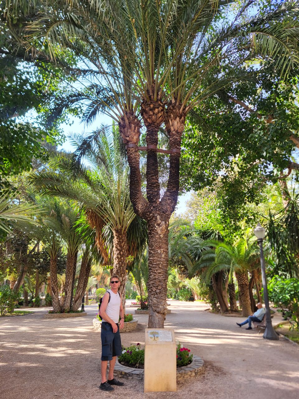 Het is lekker zonnig weer. We kiezen voor een omweg om de doorgaande wegen te mijden, waardoor we ook op hobbelige gravelpaadjes terecht komen maar dan krijg je er wel mooi landschap bij. We logeren vlakbij de luchthaven van Alicante die in Torrelano ligt. We stoppen onderweg om de stad Elche nog even te bekijken. Dat is bekend van de 300.000 dadelpalmbomen die hier overal staan.