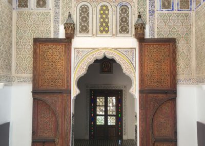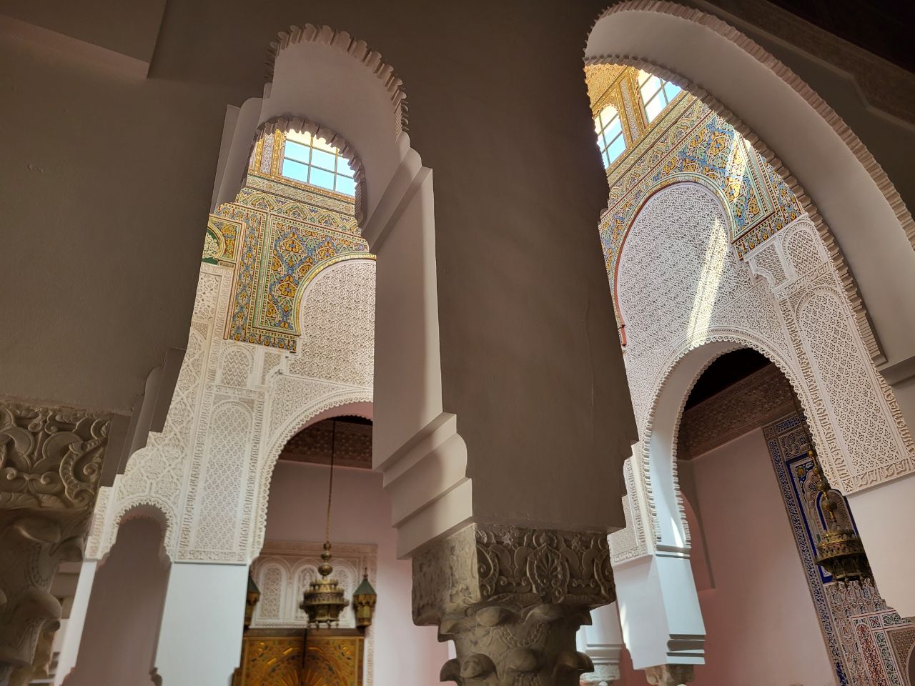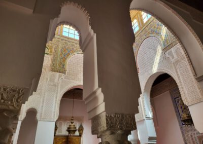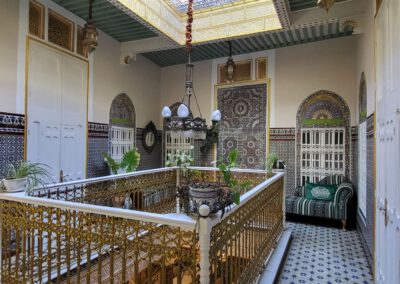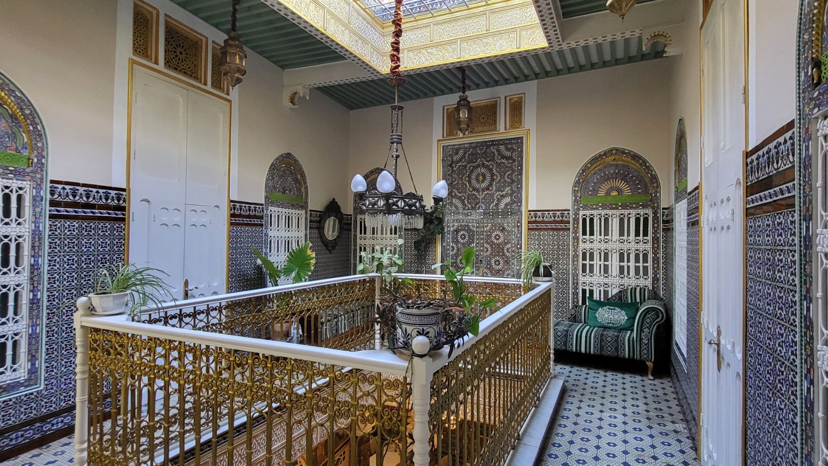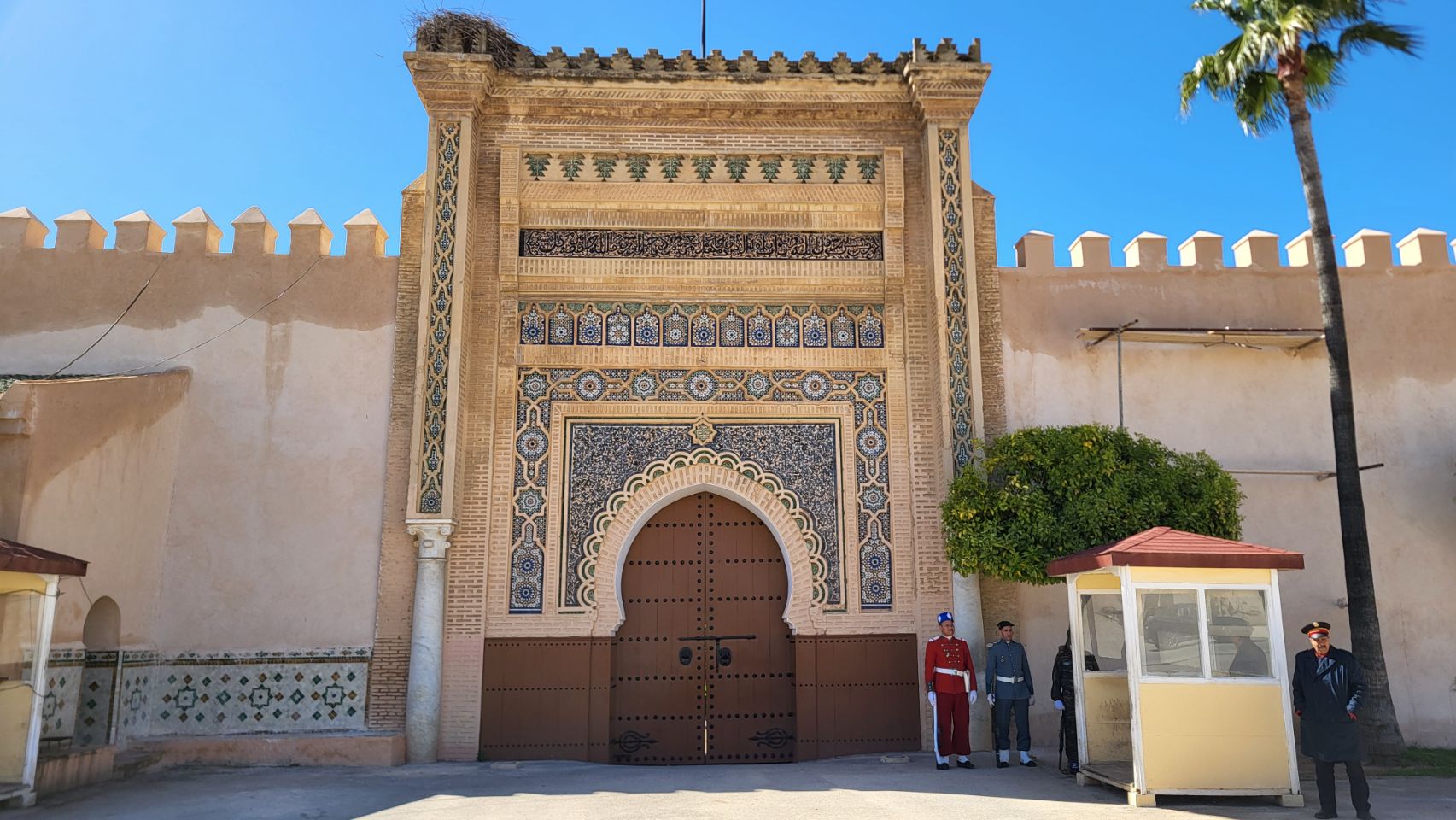 Het is vrijdag gebedsdag en ons is verteld dat alles dicht is tot 14:00 uur. We doen dus rustig aan na het ontbijt en bereiden ons verblijf in Fez alvast voor. ’s Middags gaan we de deur uit voor een bezoek aan het mausoleum van de sultan Moulay Ismaïl, de koning van Meknes die in 1727 overleed. In zijn nadagen richtte hij zich volledig op de bouw van zijn eigen graf dat groots en schitterend moest worden. Hij zou 500 vrouwen hebben gehad en 667 kinderen verwekt, dan kan je wel een goede rustplaats gebruiken. Het is een prachtig gebouw geheel in stijl van de islamitische architectuur.
