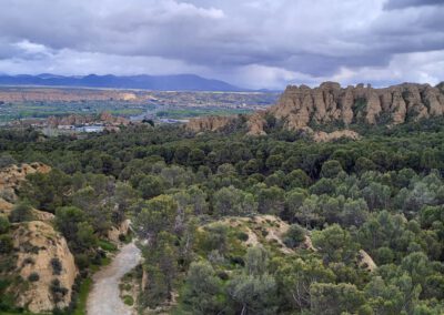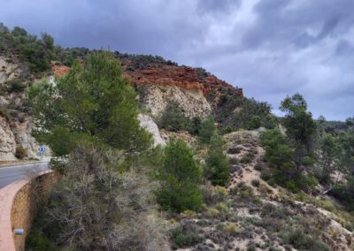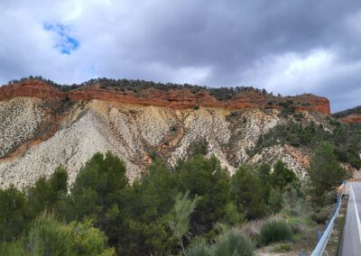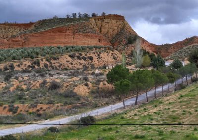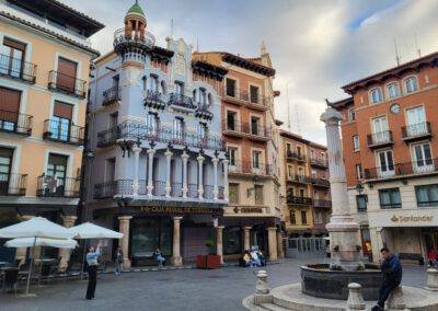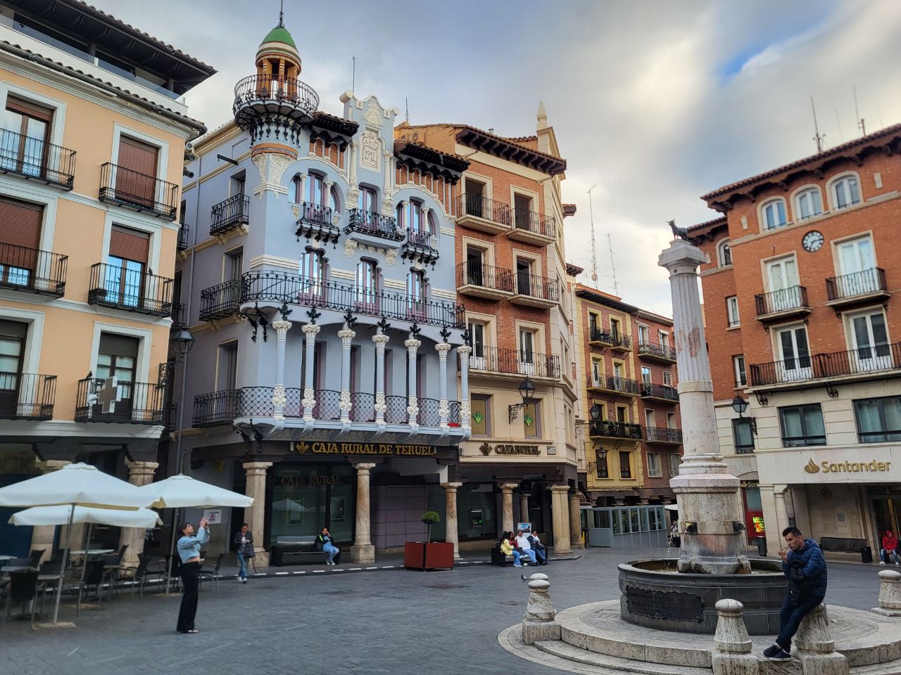 Als we stoppen onderweg voor een koffie, is er een harde wind opgestoken. Het weer komende dagen wordt weer fris, max 15 graden. Aan het eind van de middag komen we aan in Teruel, een klein stadje met een mooi historisch centrum. We zijn er op een eerdere fietsreis al eens beland, toen fietsend.