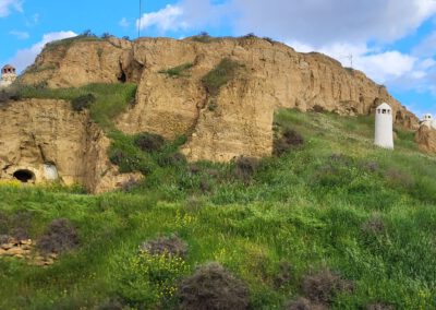 Miljoenen jaren geleden was in deze regio al bewoning in grotten. Nog steeds zijn er veel grotwoningen hier, bij elke woning zie je een schoorsteen uit de aarde omhoog komen. De meeste grotwoningen zijn inmiddels gemoderniseerd en meer naar buiten uitgebouwd, maar nog steeds herkenbaar aan de karakteristieke schoorsteen. We pakken nog even een laatste paasprocessie mee, die vanwege de regenmiddag naar de avond is verplaatst. Eerst komt Jezus langs en dan Maria. Onder de baar van Maria kan je de witte gympen van de voorste dragers spotten. Er zitten 24 dragers onder deze baar. De kunst is om exact tegelijk de loodzware baar op de schouders te tillen. Er wordt waarderend voor geapplaudisseerd.