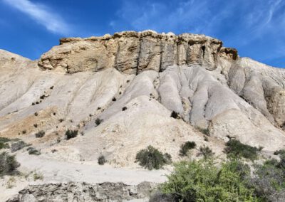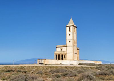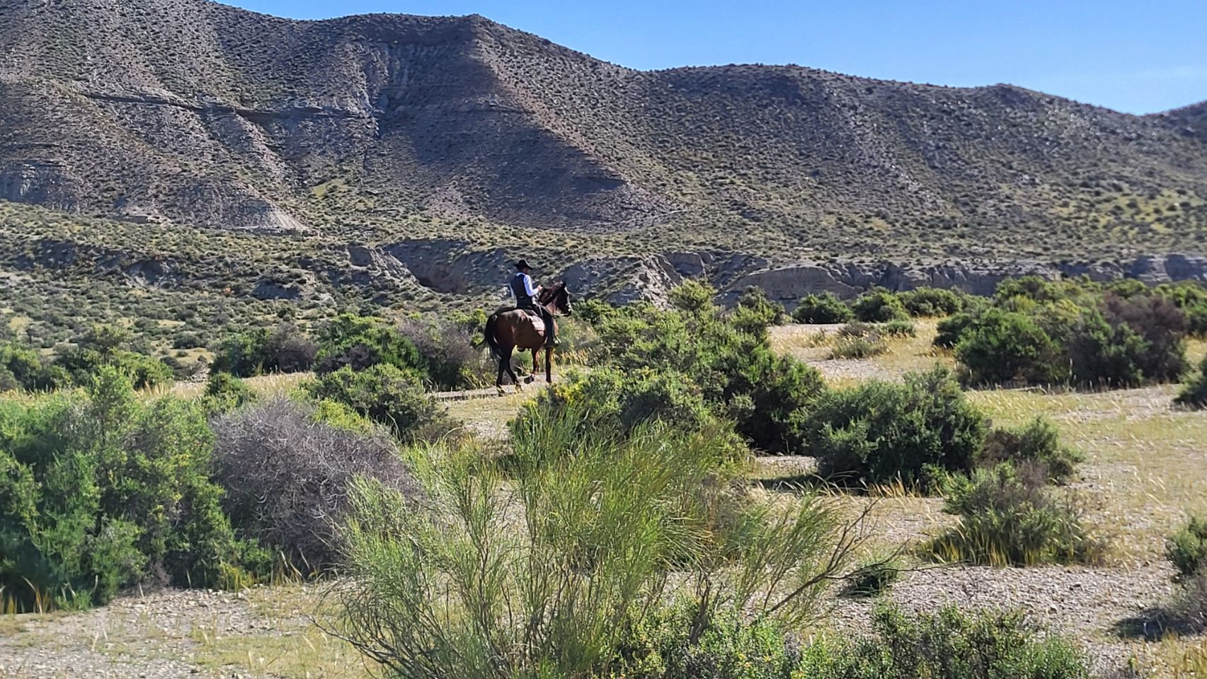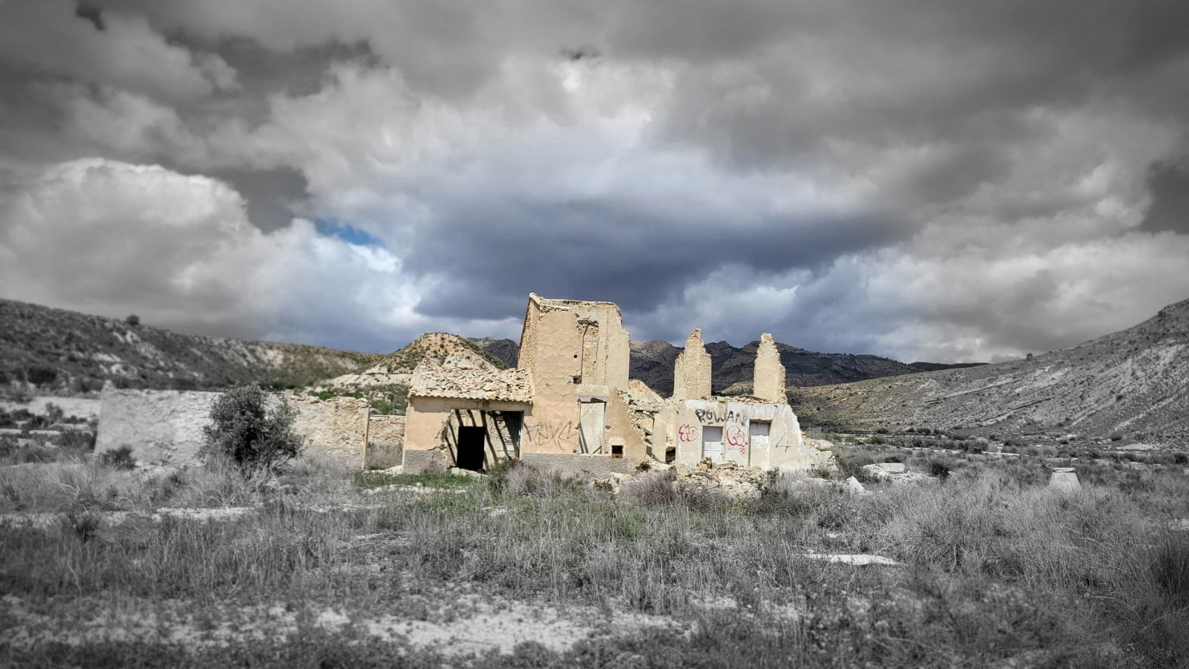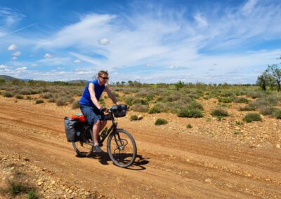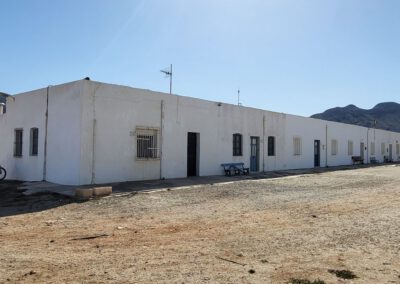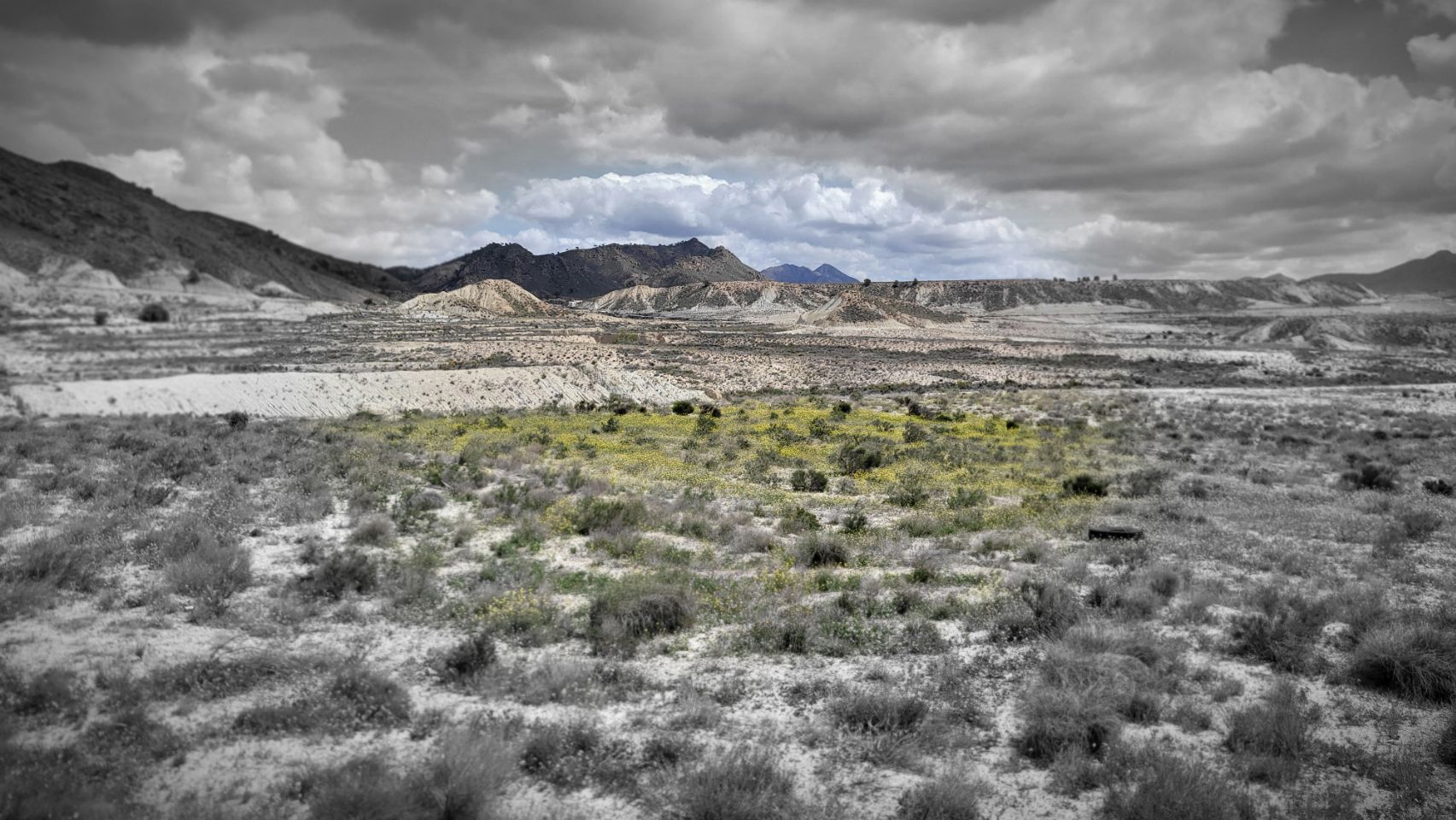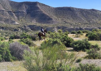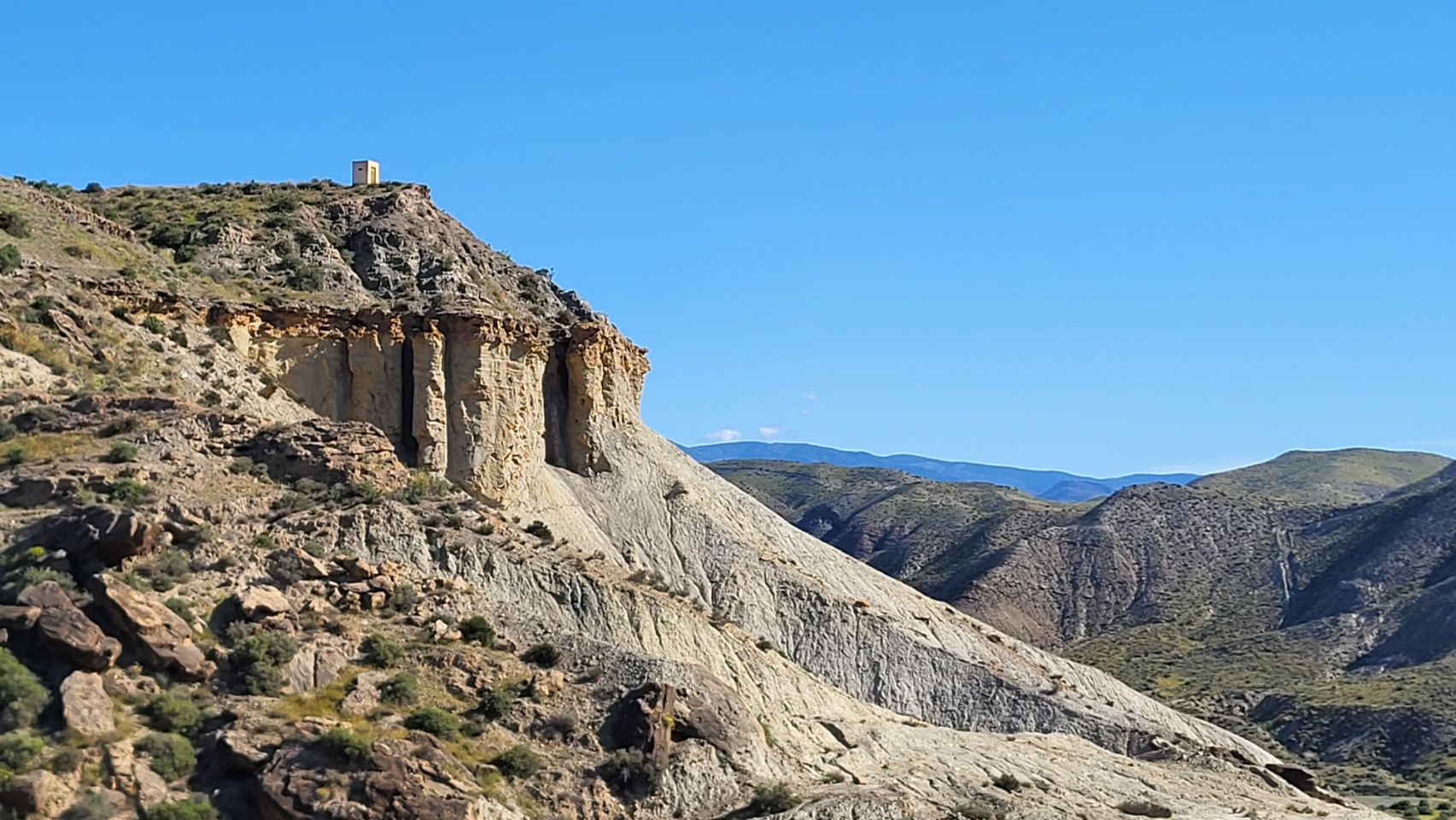 Verderop gaan we dwars door de Desierto de Taberna. Woest is het er wel maar bij een woestijn hebben wij doorgaans andere beelden. Het is echt een landschap zoals je ze in Westerns ziet en dat is dan ook de reden dat regiseurs op deze locatie neerstreken om beroemde films op te nemen, zoals The good, the bad and the ugly. Je kan de gebouwde cowboydorpjes nog zien en er worden shows gegeven. Wij vinden vooral het landschap interessant. We parkeren onze fietsen met bagage op een afgelegen plek waar geen auto’s mogen komen, dus daar zullen ze niet ingeladen worden.