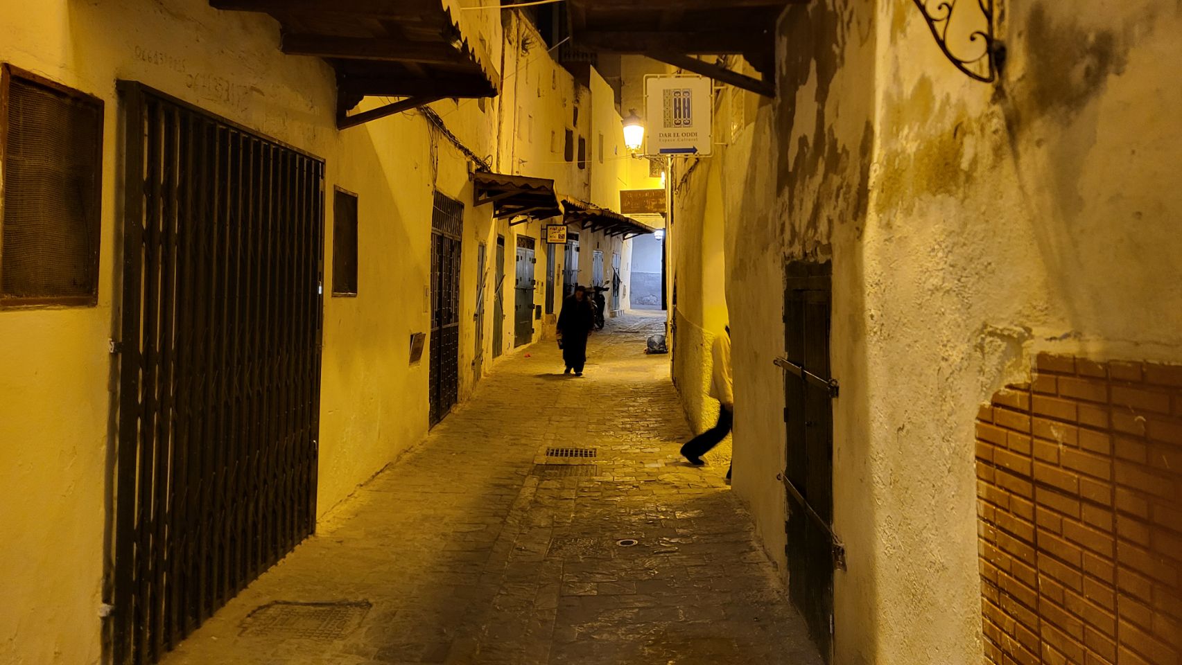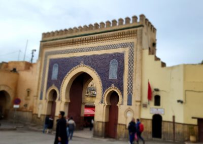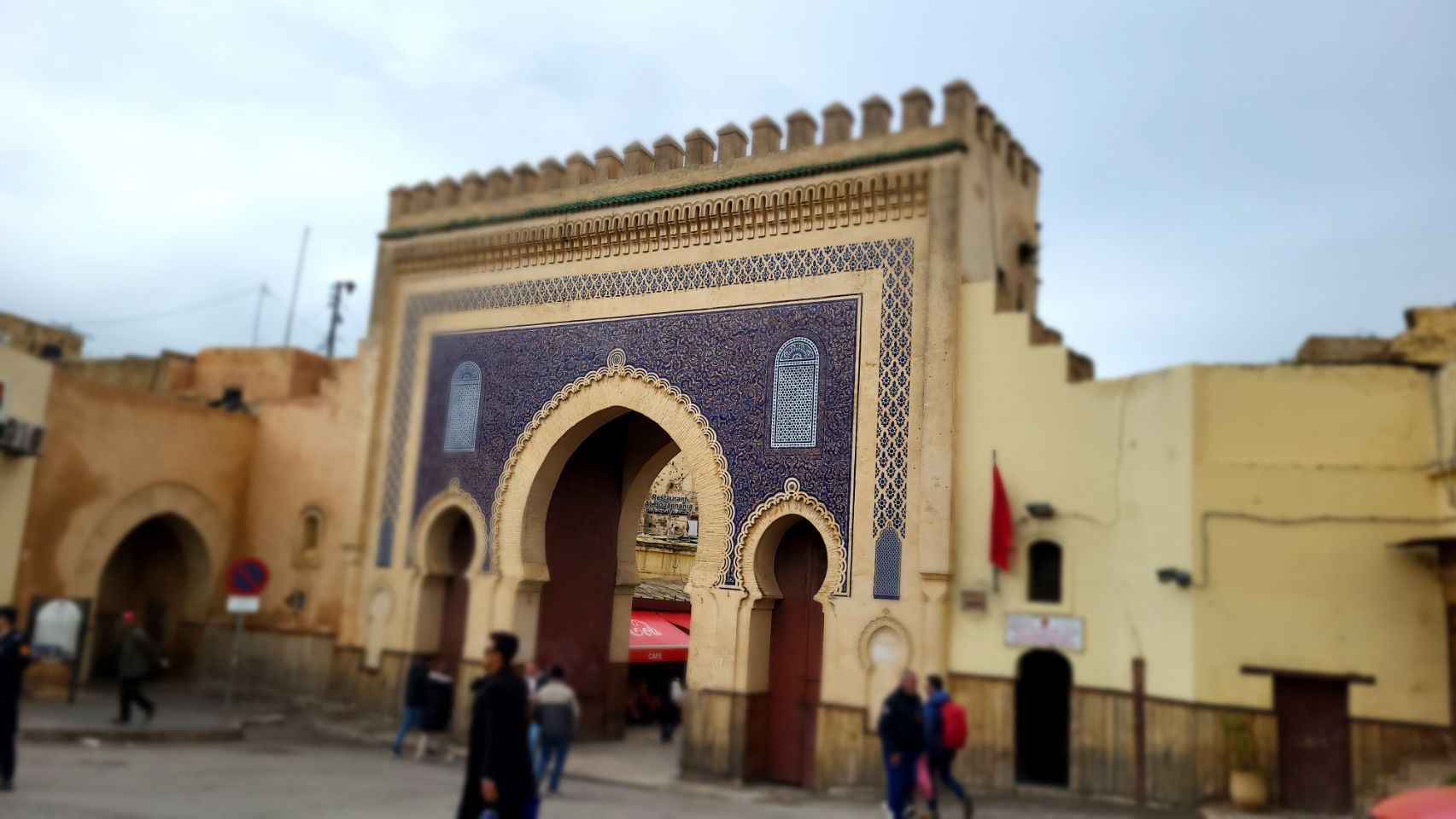 Willem krijgt een lekke band. Met verkleumde handen wisselt hij deze met de reserveband. Het is koud en nat, maar we hebben wel voor de wind! Via een lange koninklijke kaarsrechte weg met statige palmbomen en prachtige lantaarnpalen, rijden we Fez binnen tot de beroemde poort van de medina. Onze riad ligt helemaal aan de andere kant en in plaats van dwars door de drukke medina nemen we een omweg om er te komen. Het is even wennen aan al die toeristen hier, maar we zien dat ze gewoon op de dag zitten te eten en drinken. Dat is dan wel een voordeel, al zijn we inmiddels aardig ingespeeld op de ramadantijden.