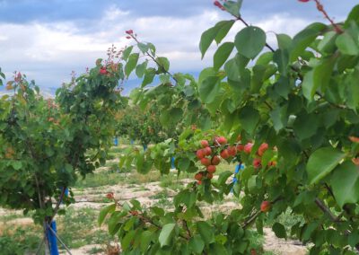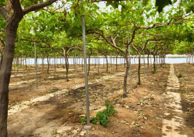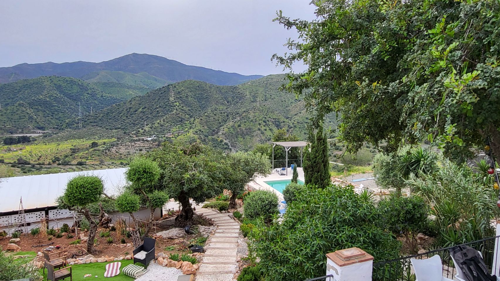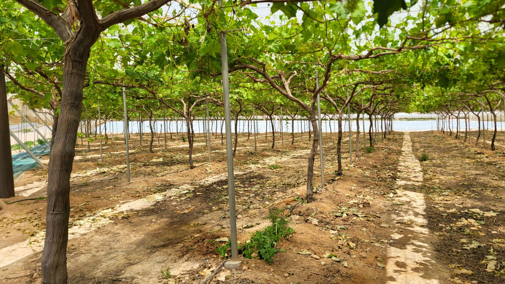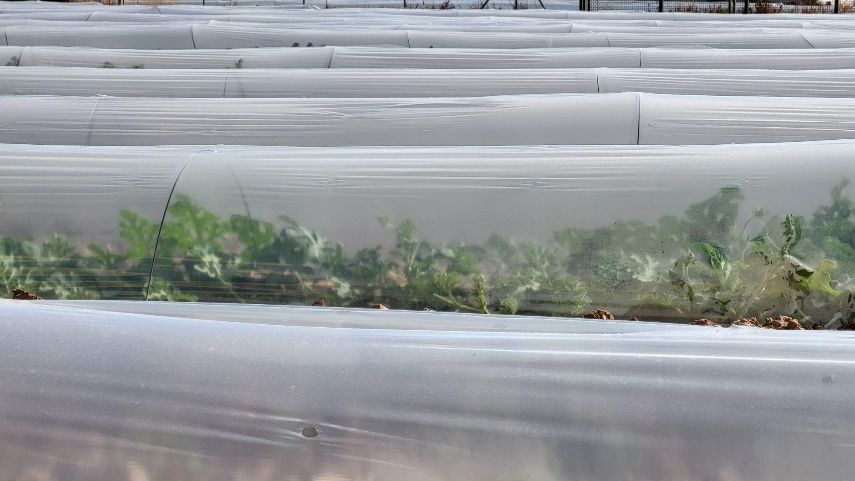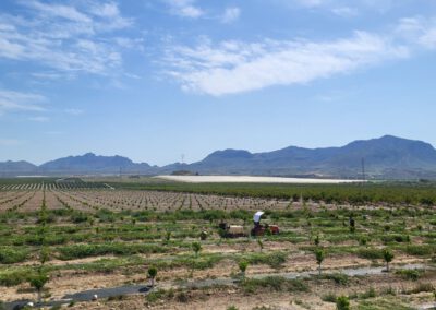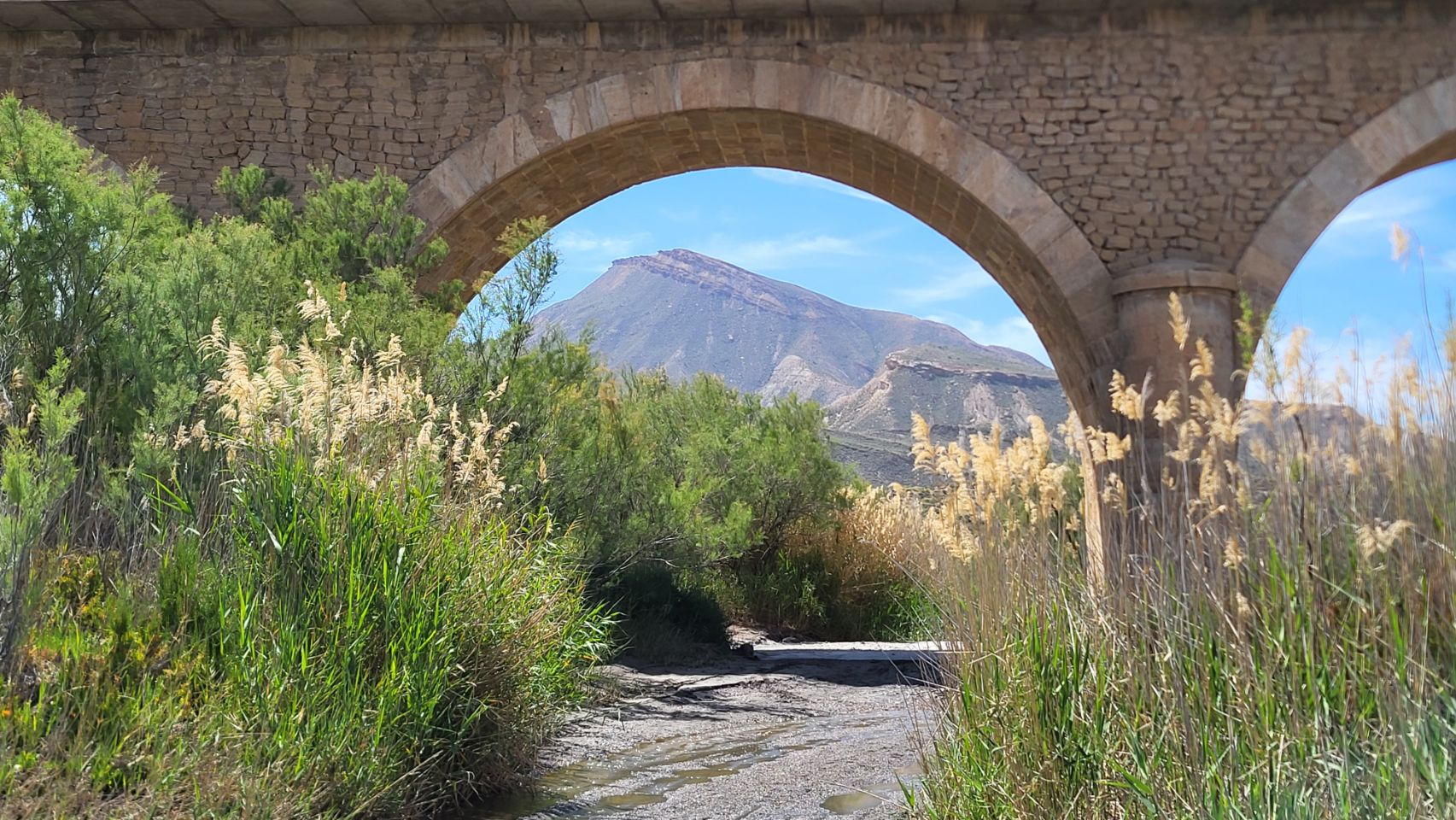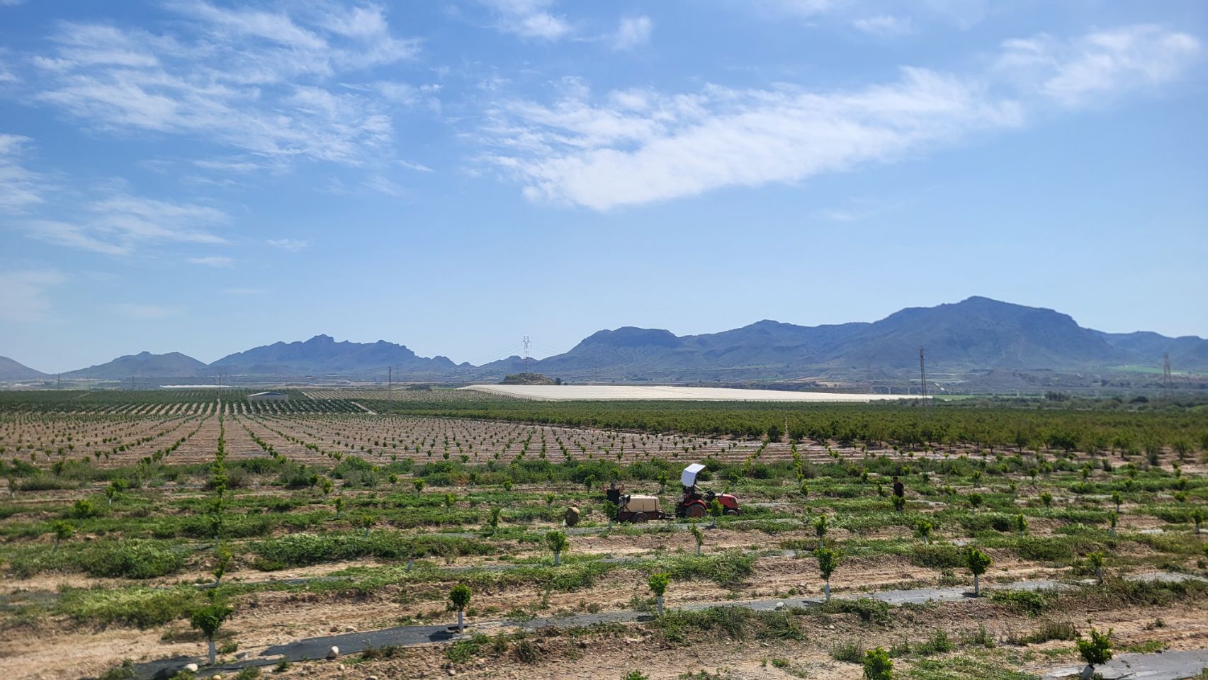 We trekken verder, 76 km noordwaarts en weer van de kust af. De route is afwisselend: tuinbouw, dorpen, groen, bergen en bloemen. Hier zien we teelten in de open lucht, zoals sla. Ook halfopen kassen met druiven. Meloenplanten staan in gaten in zwart plastic onder smalle folietunnels voor een quickstart om zo het seizoen te vervroegen. In totaal is er in deze regio Almería 33.000 ha tuinbouw, dicht op elkaar.