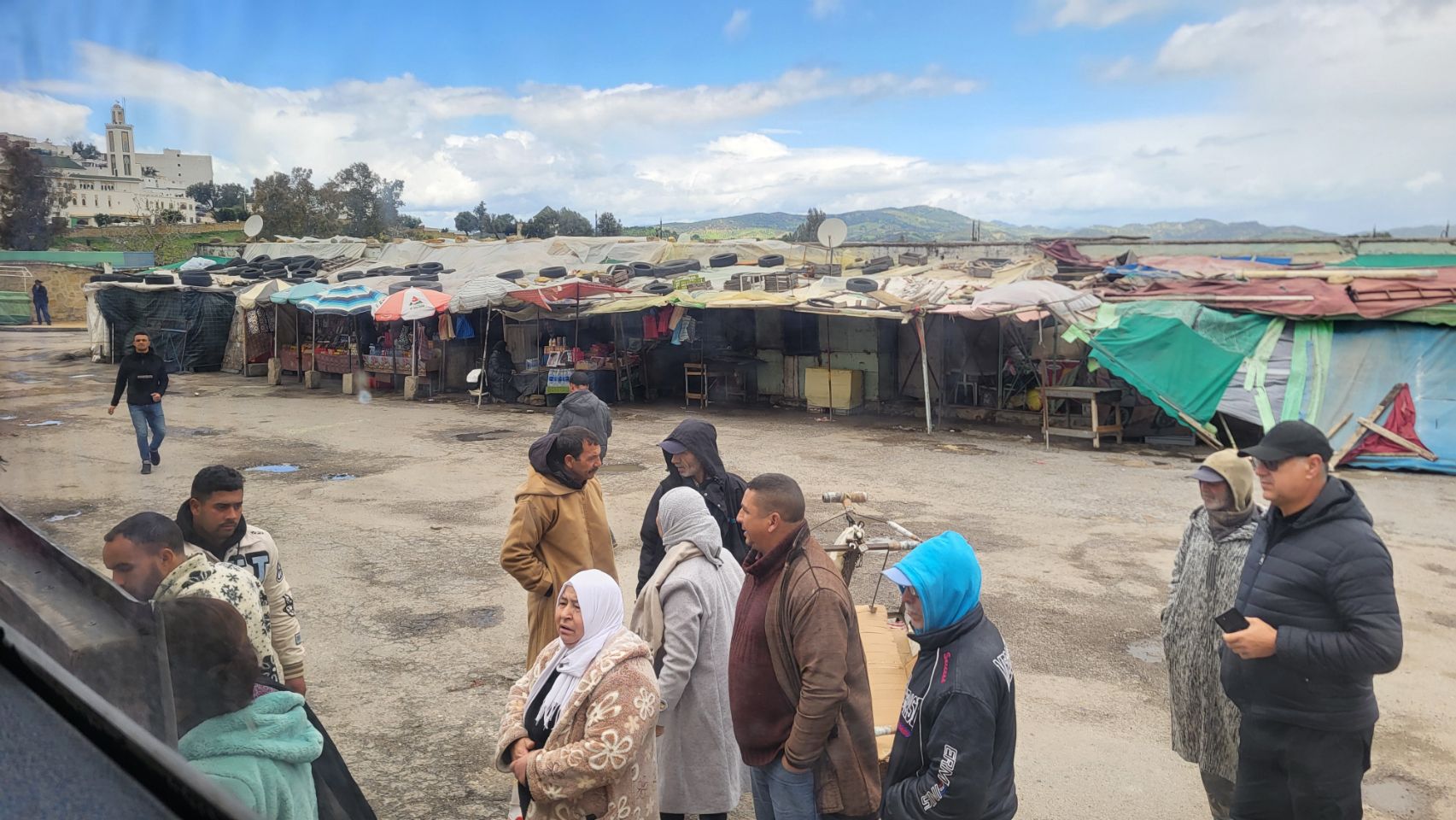 Na 72 km arriveren we in Souk el Arbaa. Er zijn twee hotels die tegenover elkaar liggen. Ze zien er beiden als afbraakpand uit, dus we kiezen de minst slechte. De mensen zijn aardig, er is wifi, maar verder is alles ronduit goor. Maar we hebben een bed, dus we zijn blij. Als we na zonsondergang wat willen eten, blijkt er nergens iets te vinden. Wel veel koffiecafes, maar nergens eten. Terug in ons hotel vragen we of ze misschien Harirasoep hebben, dat ze zelf elke avond eten. Er worden 2 koppen soep opgewarmd en met een homp brood, geserveerd in een heel vies mandje, hebben we zo toch nog een maaltijd.