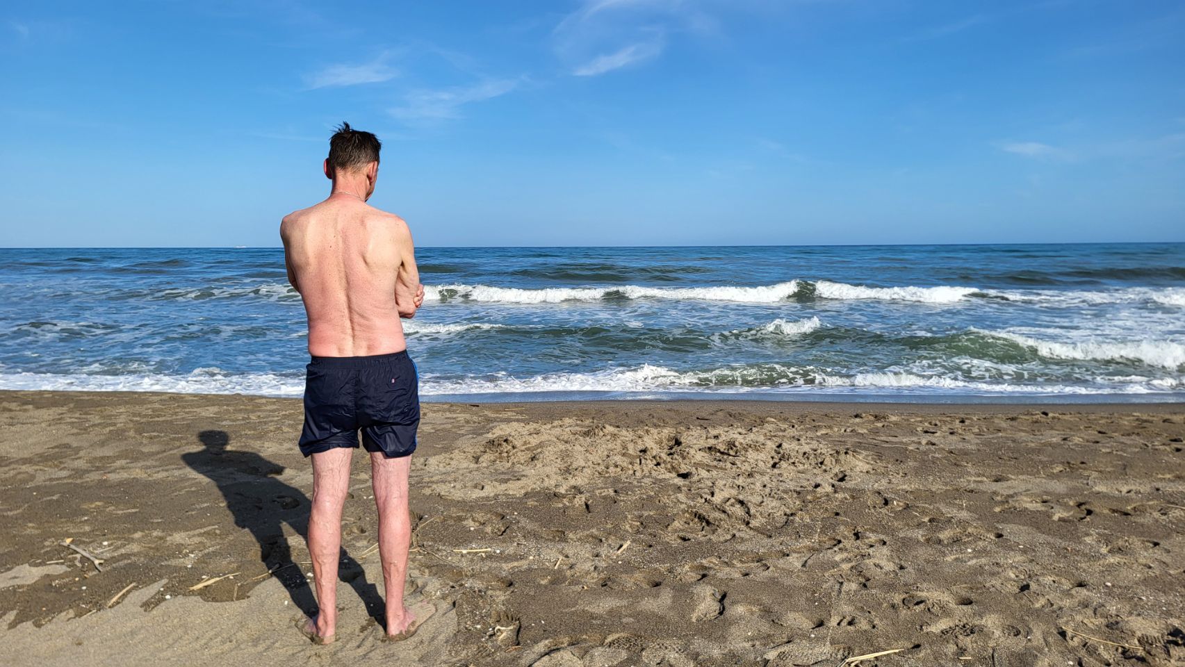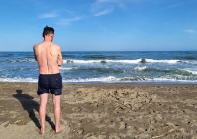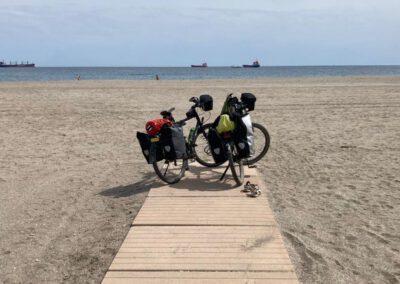 Vandaag doen we even weinig tot niets. Het is lekker weer dus we lopen naar het strand voor een duik en even lekker liggen in het zand. ’s Middags nemen we een biertje op de boulevard, uitkijkend op het rustige strand en de zee. Verder maken we een planning voor het laatste fietstraject en de treinen naar huis. Morgen alvast de boekingen doen.