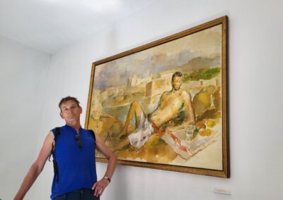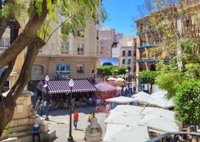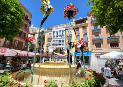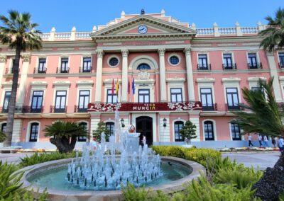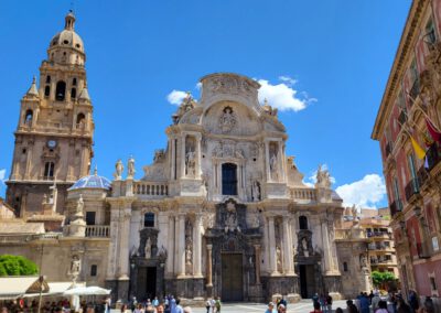 In Murcia is het nog rustig op deze zondagochtend. We drinken koffie en gaan dan naar een museum van de schilder Ramón Gaya die in deze stad woonde. Inmiddels is het lekker warm geworden, de zomer is eindelijk doorgebroken in het land. Het is een gezelllig stadje en we zwerven zomaar wat rond in het centrum waar de meeste mooie dingen te zien zijn, zoals een grote kathedraal. De stad bestaat 1200 jaar en er zijn dus veel festiviteiten dit jaar, waarbij elke maand de focus op een historische periode ligt. We boeken een hotelletje en blijven een nachtje, ook al is er vandaag niets georganiseerd.