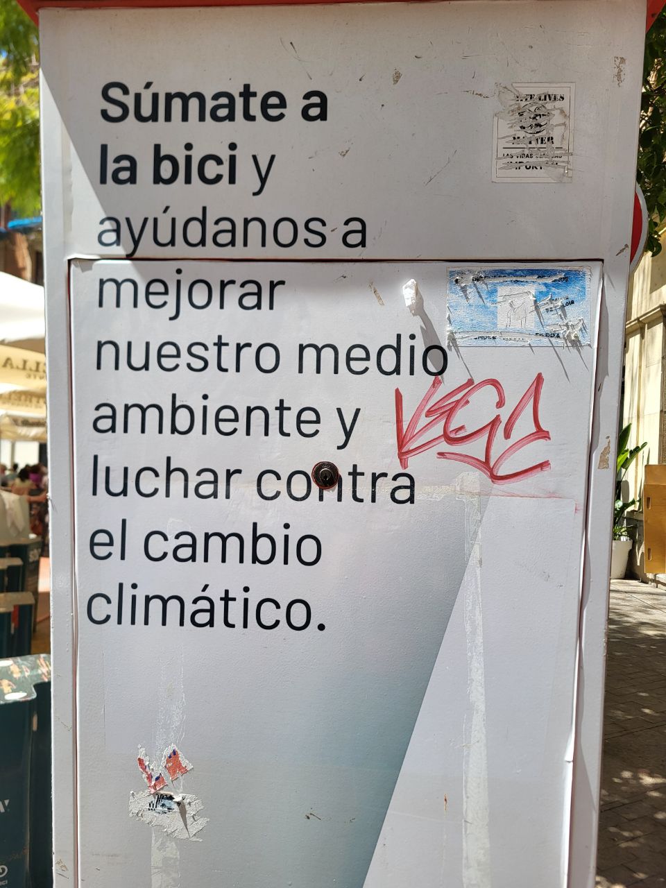 Geen zin om te fietsen vandaag, we gaan naar Murcia met de regionale trein waarin de fiets gratis mee mag. We halen treintickets uit de automaat en horen dan van anderen dat er geen treinen meer rijden, maar bussen. Daarover staat geen letter op de site van Renfe en zelfs niet op de ticketautomaat. We informeren bij een conducteur en hij denkt dat de fietsen wel in het bagageruim mee kunnen. Gelukkig hebben de overige passagiers nauwelijks bagage en als de bus komt, hebben we heel het ruim voor onze fietsen.