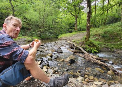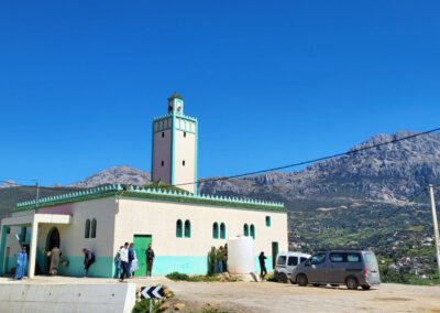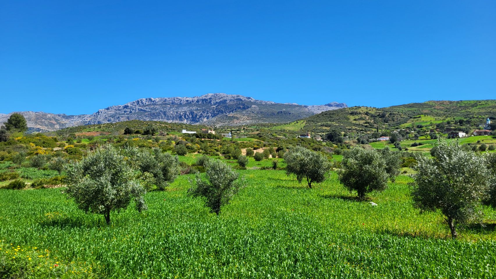Regelmatig stopt de bus en gaan er mensen in en uit en heel veel spullen en etenswaren. De laatste 10 km vanaf de hoofdweg naar Chefchaouen moeten we fietsen. De omgeving is hier erg mooi, het stadje ligt aan de rand van een nationaal park. Als we een broodje smeren langs de weg komt een herder trots de zak eetbare paddenstoelen laten zien die hij geplukt heeft.