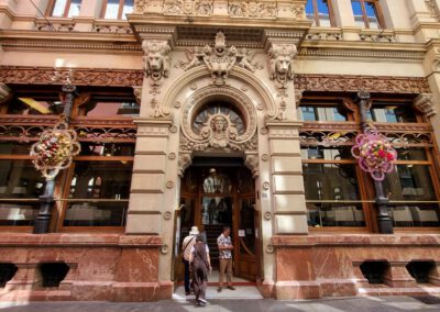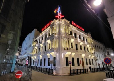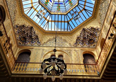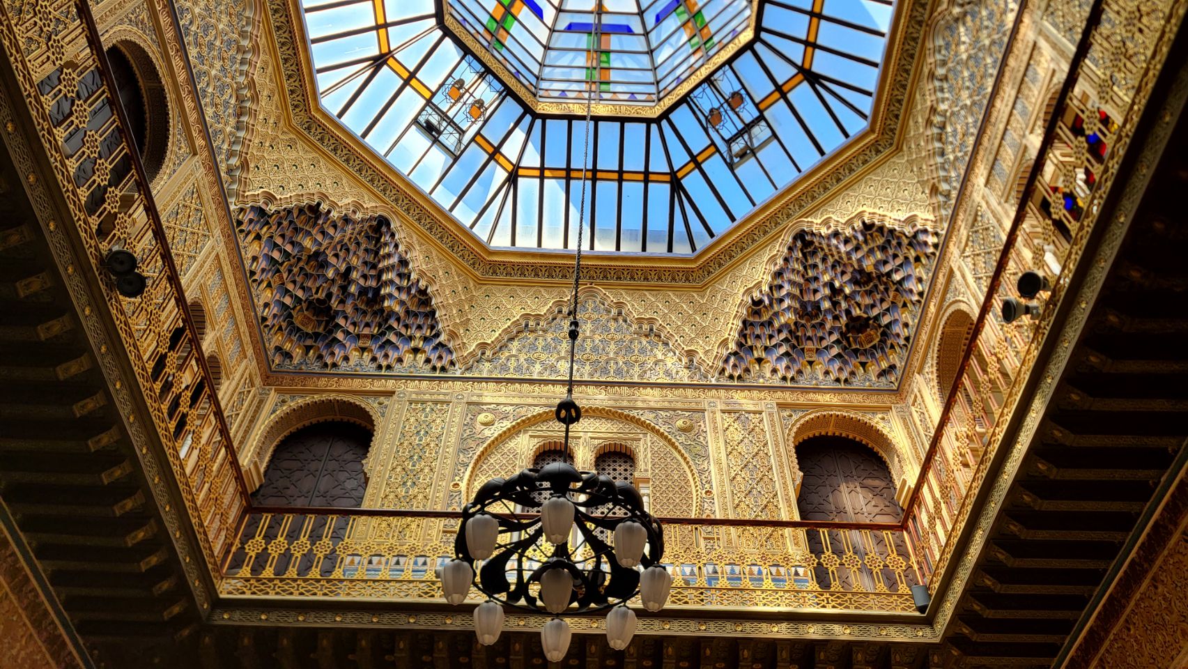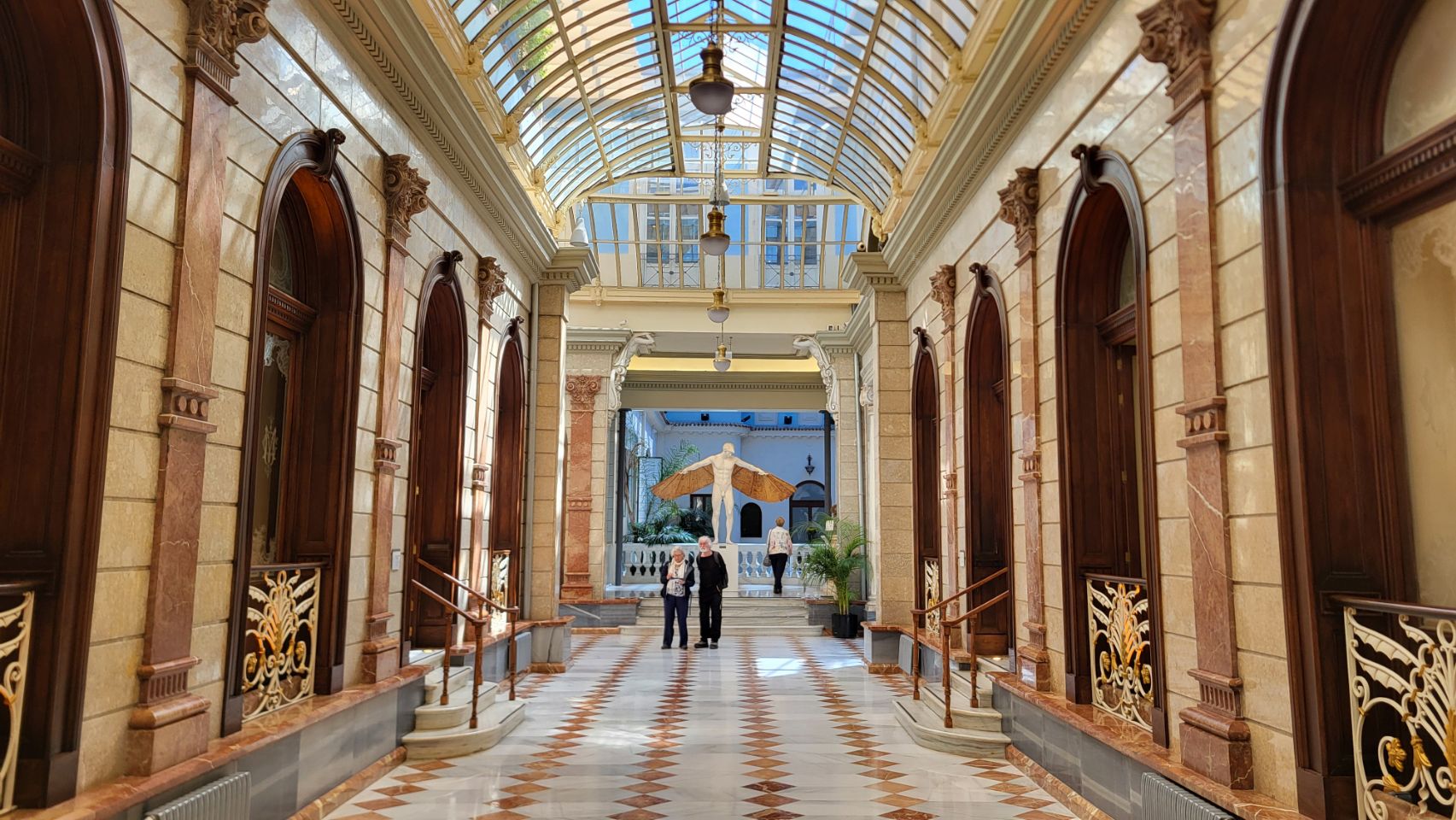 We zijn nog in Murcia en hoeven maar 25 km te fietsen naar Ceuti waar we gisteren eigenlijk al heen zouden gaan, tot we Murcia onze planning in fietsten. We kunnen dus nog wat dingen bezichtigen zoals het Royal Casino uit 1847 gebouwd in verschillende stijlen, waaronder de Moorse. Ondanks de naam is het geen casino, maar was het een high societyclub. Het pand is in de 20e eeuw volledig gerenoveerd. Het ziet er schitterend uit, met onder anderen een balzaal, bibliotheek, lady’s room, biljartzaal, eetzaal, terras en meetingroom. Alles is prachtig gedecoreerd en deels nog in gebruik.