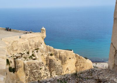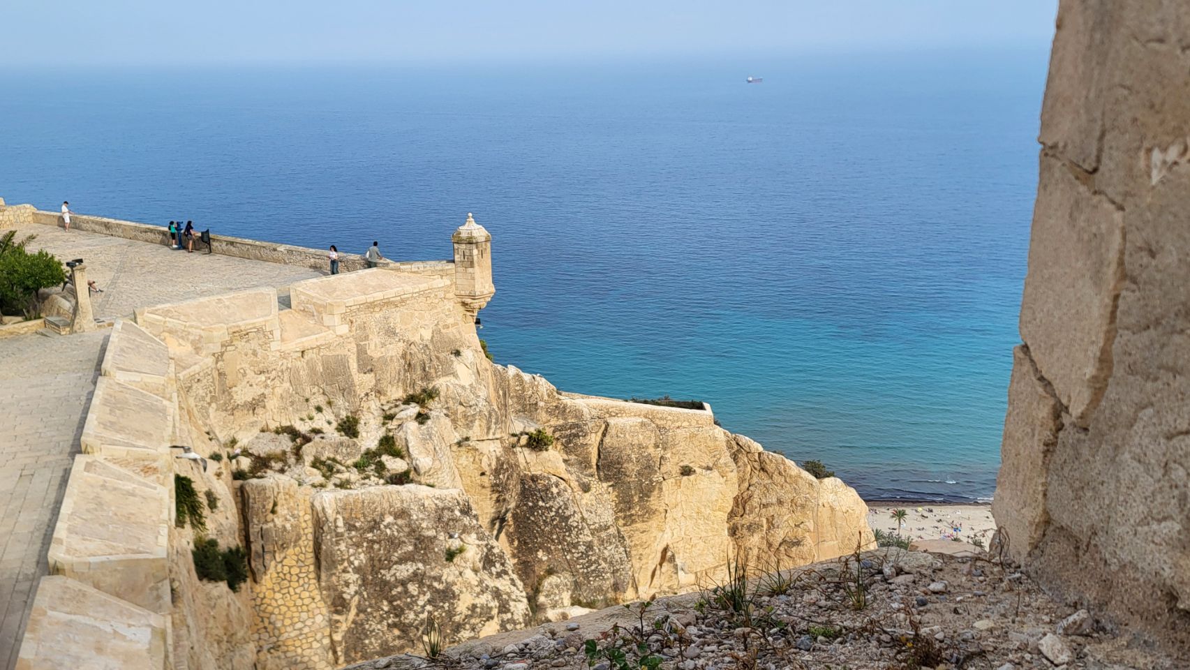 Naast ons wordt lekker geflirt tussen twee Ieren en een groepje Spaanse meiden. De boys schuiven steeds wat dichter naar hen toe. Vanaf de kust torent een oud Moors kasteel op een berg. We beklimmen deze en kijken er even rond, maar hebben al te veel oude burchten gezien om echt onze interesse te wekken. Naar beneden lopen we over de muur van de burcht tot, bijna beneden, andere mensen terugkomen met de melding dat er een hek staat. Wij willen niet dat hele eind terug en zullen wel eens zien of dat hek ons tegen kan houden. Er zit een gat in dus we limboën ons er doorheen en zijn weer beneden op straat. Nog even wat eten en dan met het treintje weer terug.