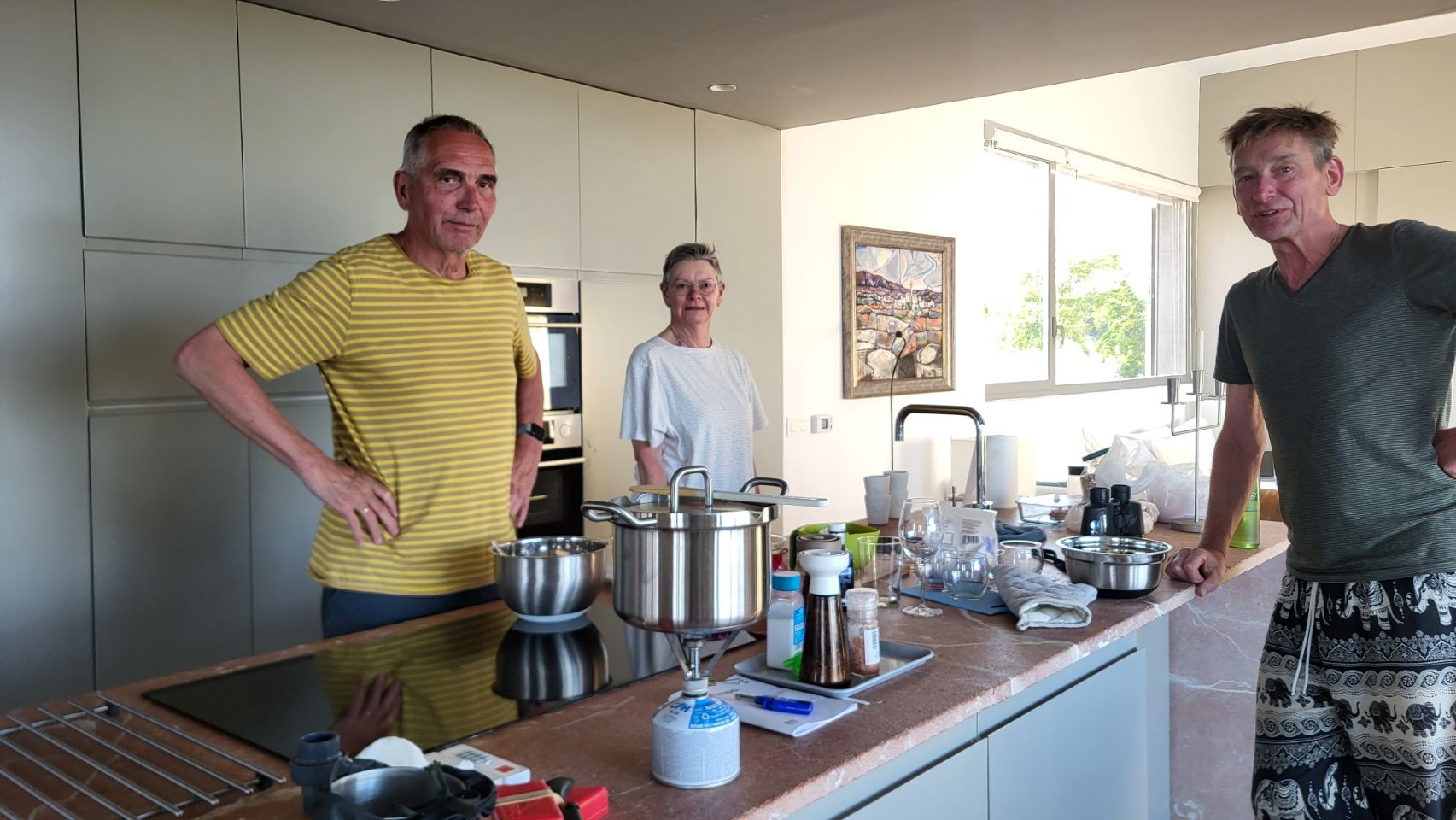 Als Kees een pan soep kookt, valt de stroom in huis uit en komt de campinggaspit van Willem nog goed van pas. Wordt het toch primitief koken in die designkeuken! We hebben besloten alleen nog naar Alicante te fietsen en vanaf daar bij gebrek aan treinopties een auto te huren om naar Irun te rijden en deze daar weer in te leveren. Vervolgens fietsen we de grens over om vanuit Hendaye de trein te pakken naar Parijs die we voor 8 mei hebben geboekt.