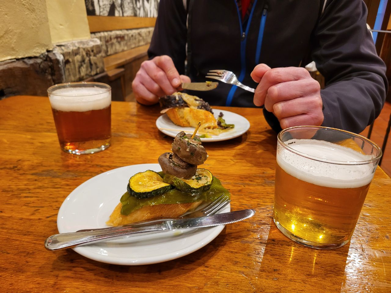 We herkennen onderweg alweer de leuzen van de recalcitrante Basken. Vandaag blijkt een Baskische feestdag te zijn, een soort carnaval om de overgang van de winter naar de lente te vieren. Het weer is goed dus we maken een wandeling langs de kust. Er liggen vele surfers in het water die de hoge golven proberen te pakken. ’s Avonds gaan we natuurlijk pintxos eten, de Baskische benaming van tapas.