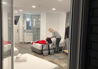 We lunchen in een mooi wit stadje en dan is het nog doorbuffelen tot 20:00 uur en we eindelijk kunnen inchecken. Pffff. Het is een groot hotel en we horen alleen maar Nederlands om ons heen. Gelukkig bieden ze een dinerbuffet, zodat we niet meer naar buiten hoeven.
