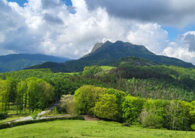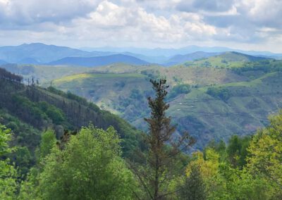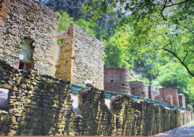 Irun ligt tussen de Atlantische oceaan en de Pyreneeën. Voor de oceaan is het te koud vandaag, 13 graden max en regen, dus het wordt wandelen in het groen. We hopen dat de zon zich ook nog even laat zien. De wandelroute loopt naar een rijtje watervallen. Onderweg zien we de ovens waarin met kolenstook ijzercarbonaat werd verhit om er kwalitatief betere ijzeroxide van te maken. Van de 11 ovens op rij, ronde en vierkante, staan er nog 9. Al sinds de Romeinse tijd werd het Baskische Aiako Harria-massief aangeboord om mineralen te ontginnen, waaronder ijzerertsen. Midden negentiende eeuw kwam de ontginning van ijzerertsen in een stroomversnelling. De ijzeroxide ging in schepen via de havens van Hendaye en Bilboa naar de hoogovens in Frankrijk, Engeland en Belgie.