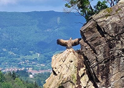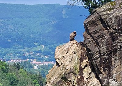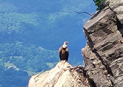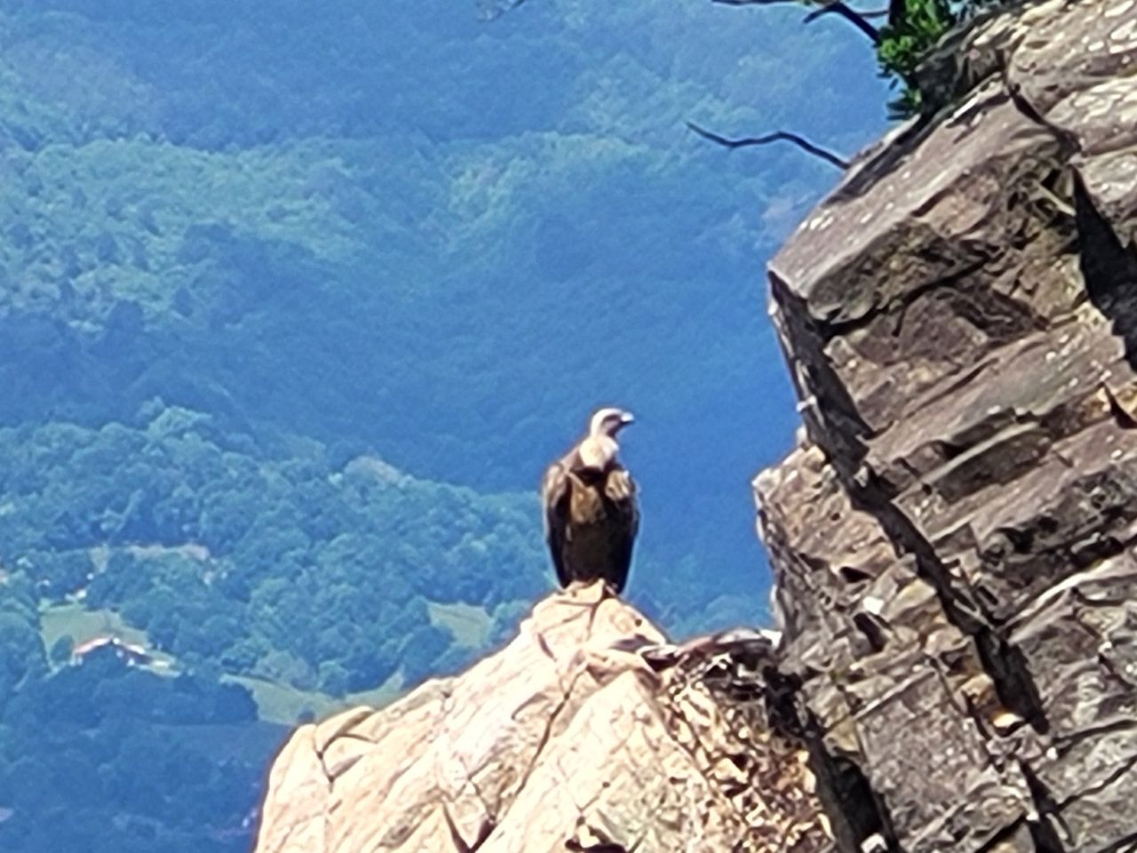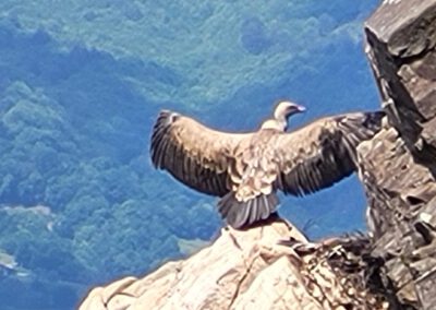 Als we naar een waterval kijken, ziet Willem opeens op onze ooghoogte, op een tegenoverliggende rots boven de kloof een vale gier zitten. Deze is duidelijk herkenbaar en er cirkelen er ook een aantal in de lucht die uiteindelijk ook hier en daar landen. Naast de gier zien we af en toe wat omhoog bewegen, dat zal een jong zijn. Op een foto is een kopje te herkennen. De gier slaat de vleugels uit en draait af en toe om, maar blijft op haar post. Imposante vogels met een vleugelspanwijdte van 2,5 meter. We kijken er een tijd naar en lopen dan het laatste stuk terug naar de auto. Deze brengen we meteen weg naar de verhuurder op de luchthaven buiten de stad. Vanaf daar wandelen we terug naar ons hotel en doen onderweg nog even wat boodschappen in de supermarkt.